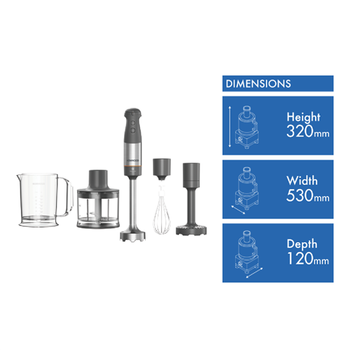 • Hand blender with 0.5 Litre chopper and beaker