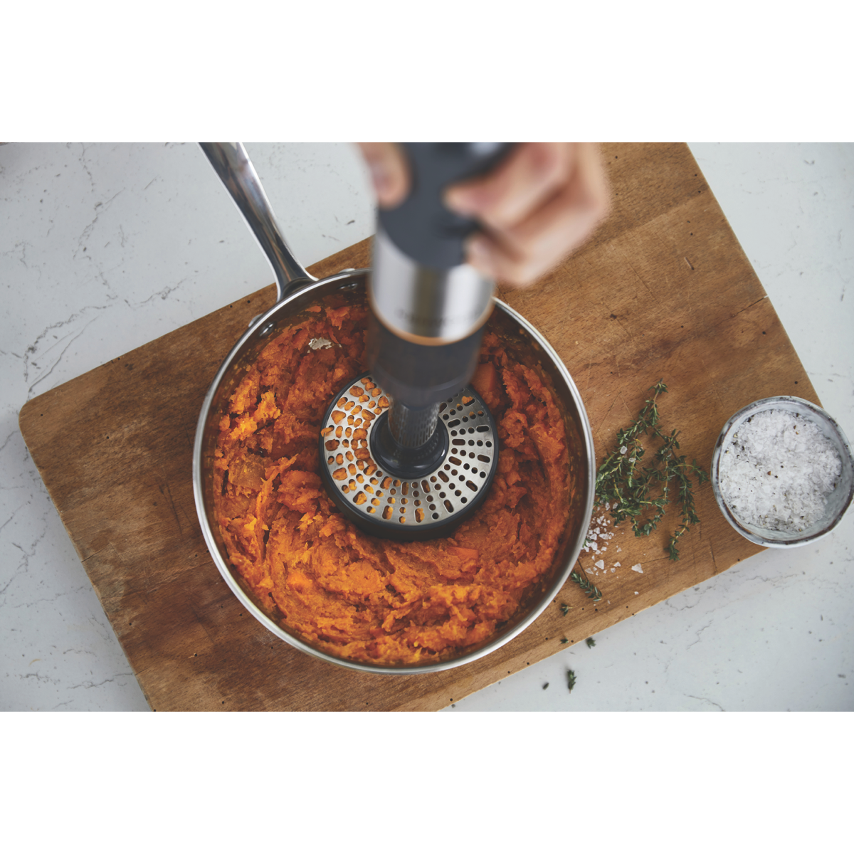 • Includes metal puree and masher, whisk, and beaker