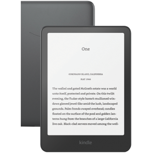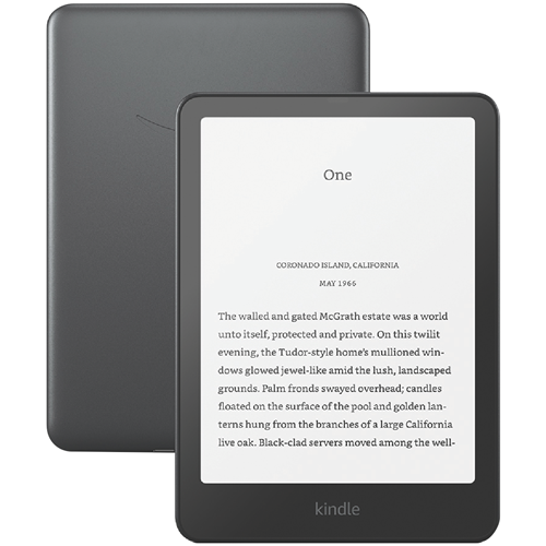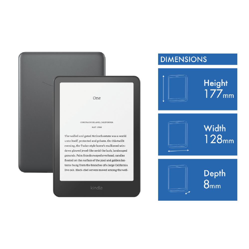 Enjoy your favorite books anywhere with this 7-inch Kindle Paperwhite Signature Edition. The sleek metallic black design weighs just 214g and fits comfortably in your hands for hours of reading. With a massive 32GB storage you can build an entire digital library without running out of space. The battery is seriously impressive - a single charge lasts up to twelve weeks based on half an hour of daily reading. It fully charges in under 2.5 hours using a 9W USB power adaptor or compatible wireless charger. Plus you'll get free cloud storage for all your Amazon content. Everything you need comes in the box: the Kindle itself a USB-C charging cable and Quick Start Guide all backed by a 1-year warranty. Part number: B0CFPHTMDX.