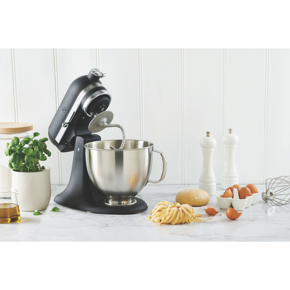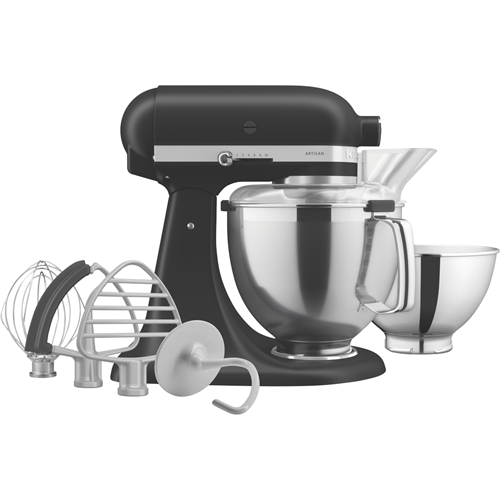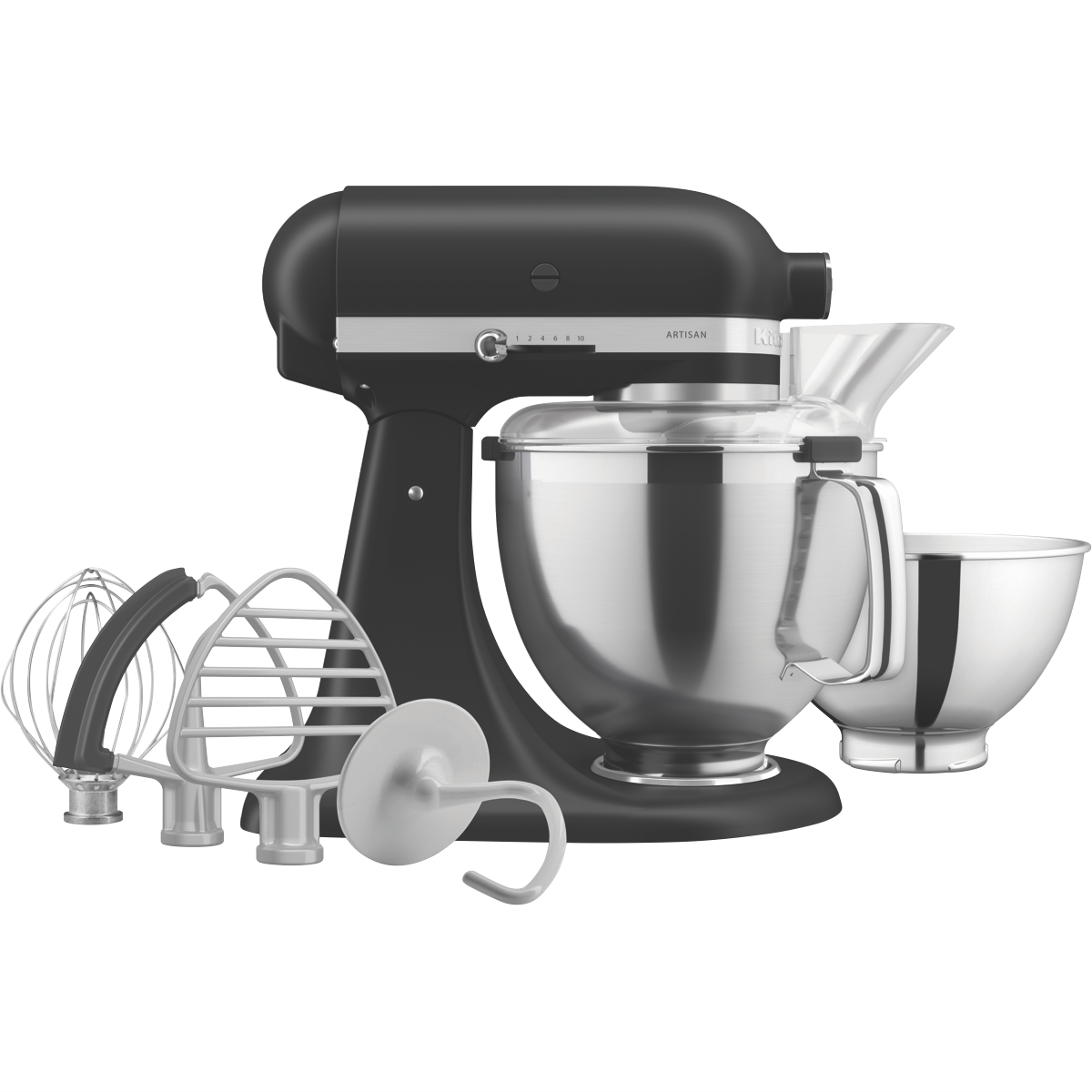 The KSM195 KitchenAid Artisan Series Tilt-Head Stand Mixer with Premium Accessory Pack has the capacity and tools for every occasion. This model includes both a 2.8L and 4.7L bowl so you can do more - mix up batter in one and then whip up a silky frosting in the other. In addition the exclusive accessory pack includes a flex edge beater pastry beater dough hook wire whip and redesigned secure fit pouring shield. This durable tilt-head stand mixer was built to take it all on and features 10 speeds to gently knead thoroughly mix and whip ingredients for a wide variety of recipes