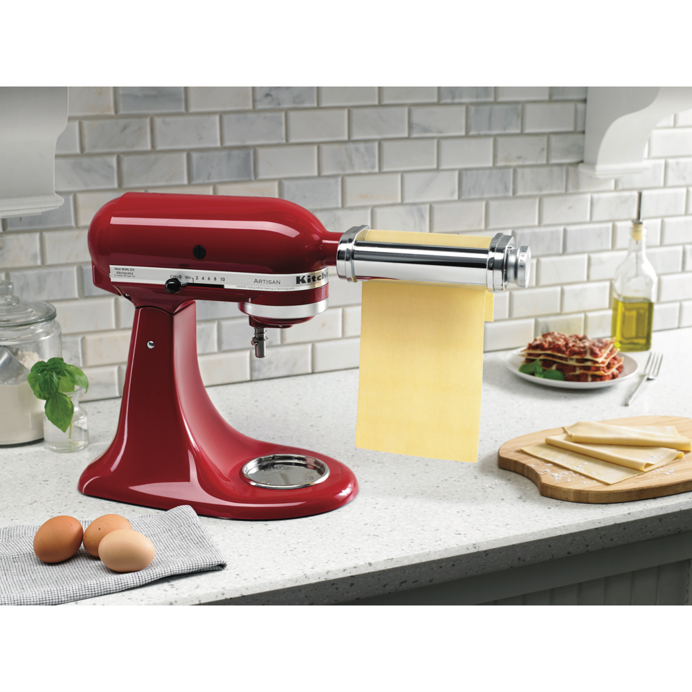 Make pasta night a breeze with the KitchenAid 3 Piece Pasta Attachment Set. This stainless steel set allows you to create restaurant-quality pasta from the comfort of your own home. With the pasta sheet roller simply feed dough through to flatten and thin it out. Then use the spaghetti and fettuccini cutters to cut the dough into perfect noodles. The possibilities are endless with this set - make lasagne sheets tagliatelle ravioli and more. Crafted from durable stainless steel these attachments are designed for years of pasta making. All attachments are dishwasher safe for easy cleanup. Transform your KitchenAid stand mixer into a pasta extruder and enjoy fresh homemade pasta any night of the week. With a one year warranty you can purchase with confidence. The manufacturer's part number for this product is KSMPRA.
