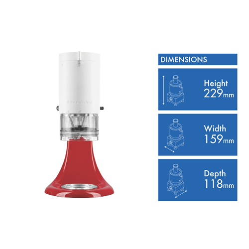 Additional Features 500ml Of Shave Ice In 60 Seconds, Two blades from fine snow to coarse hand shaved textures, Dishwasher safe food contact parts (not upper housing), Attachment only: KitchenAid Stand Mixer not included