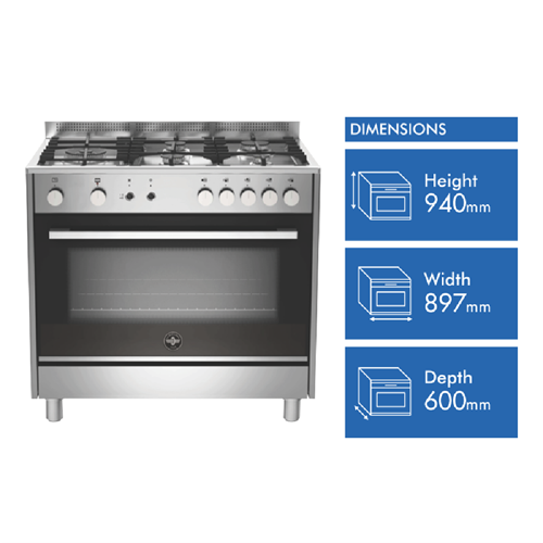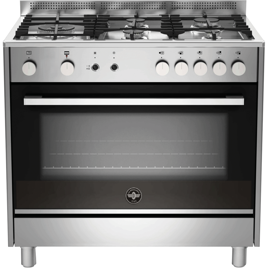 Step up your cooking game with the sleek and stylish La Germania Futura 90cm Gas Upright Cooker in stainless steel. This freestanding oven brings modern design and robust cooking performance to your kitchen. With its generous 142L capacity five gas burners and five versatile oven functions like gas convection baking and grilling this La Germania cooker lets you prepare delicious family meals with ease. The durable stainless steel finish ensures this oven looks great for years to come. Convenient features like flame failure safety device and a handy timer help make cooking safer and simpler. With La Germania's two-year warranty you can cook with confidence knowing this gas cooker is built to last. The manufacturer's part number for this product is TUS95L71DX. Bring home the La Germania Futura Gas Cooker for high-powered cooking made easy.