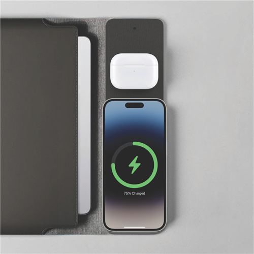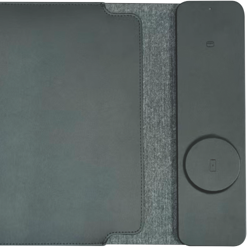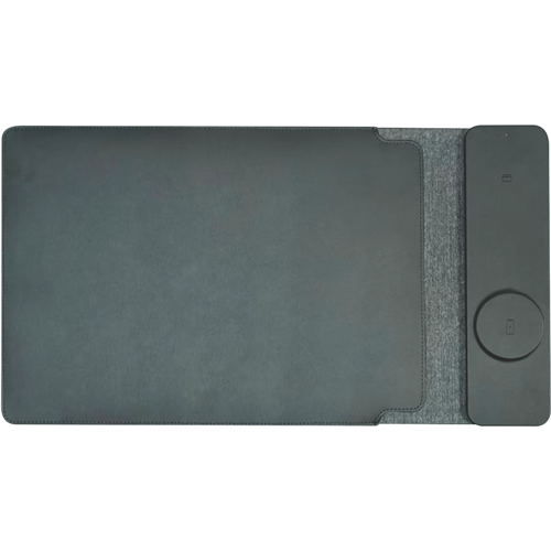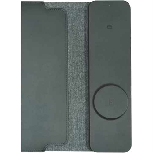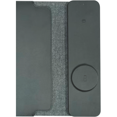 Additional Features 2-in-1 laptop sleeve and mobile mousepad with sleek, modern design. Water-resistant with magnetic closure for easy access, 15W fast wireless charging for phones and earbuds