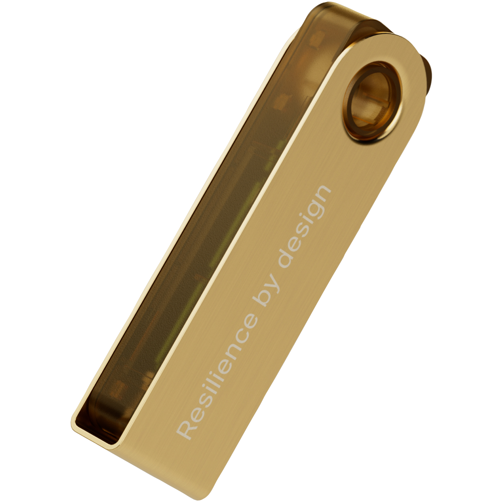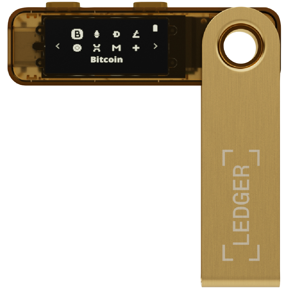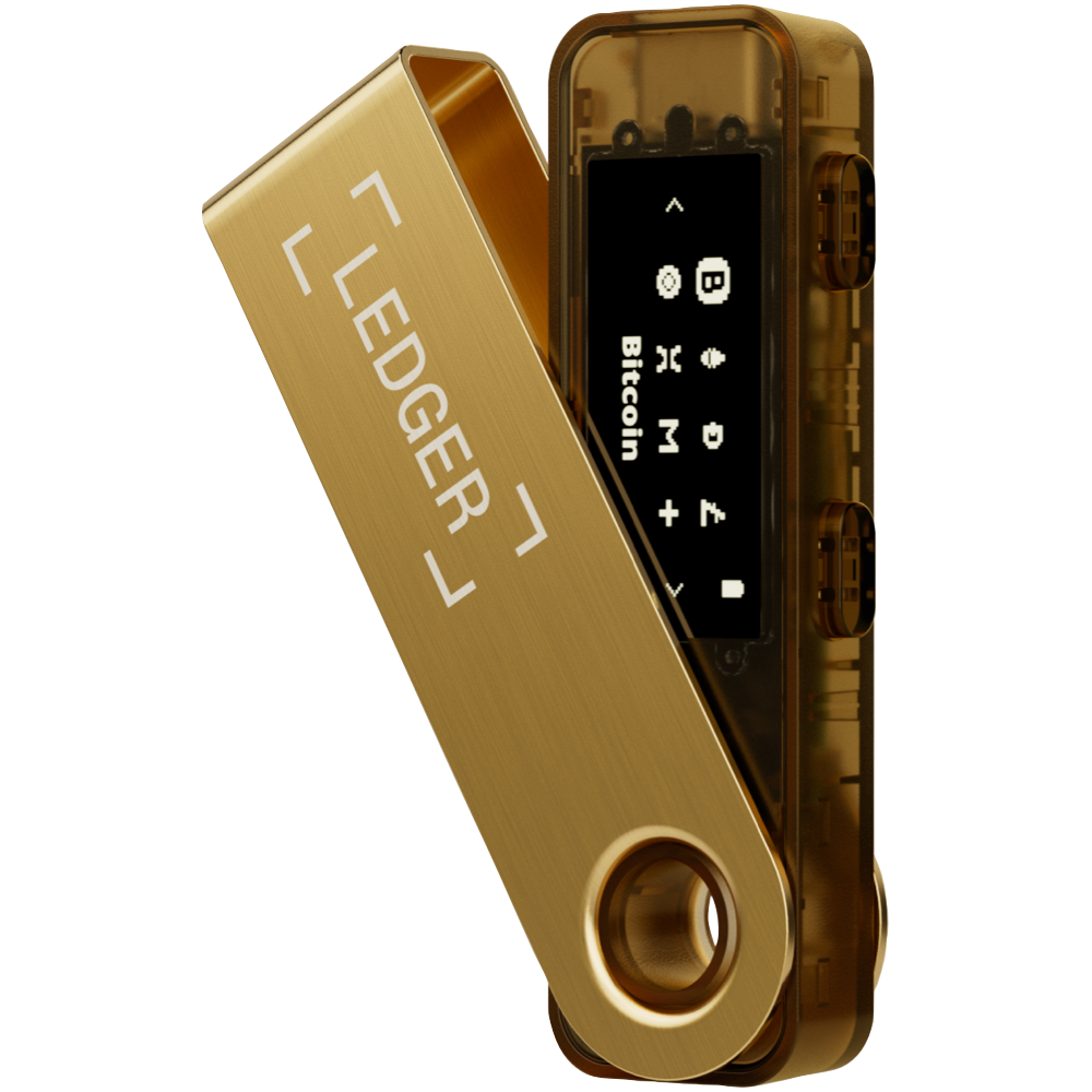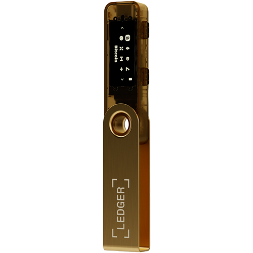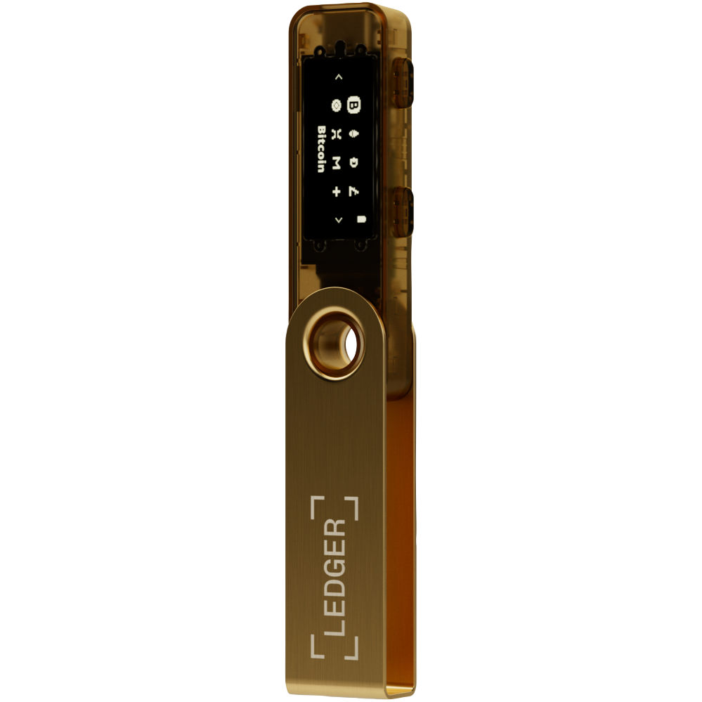 Keep your cryptocurrency secure with the Ledger Nano S Plus crypto wallet in stylish gold. This compact device measures just 62.39mm x 17.40mm x 8.24mm and weighs a mere 21g making it easy to carry wherever you go. The USB Type-C connection ensures quick and convenient access to your digital assets when you need them. Compatible with all phone types thanks to its universal design you can manage your crypto portfolio with confidence. Comes with a 2-year manufacturer's warranty. Model 254477.