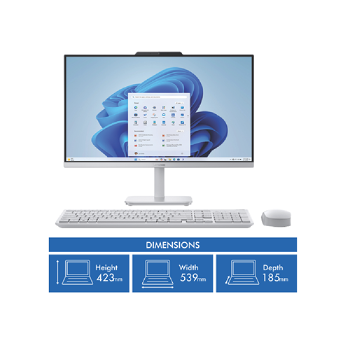 This 23.8 All In One Desktop brings everything you need for your home office in one sleek package. Powered by an Intel i3 processor with 8 cores and turbo speeds up to 3.8GHz it handles everyday tasks with ease while the 8GB of memory keeps everything running smoothly. The Full HD display delivers crisp 1920 x 1080 resolution perfect for documents and entertainment. With 512GB SSD storage you'll have plenty of space for your files and the comprehensive connectivity includes multiple USB ports HDMI and wireless options with Wi-Fi 6 and Bluetooth 5.2. Comes with Windows 11 Home pre-installed. Model F0J60030AU.