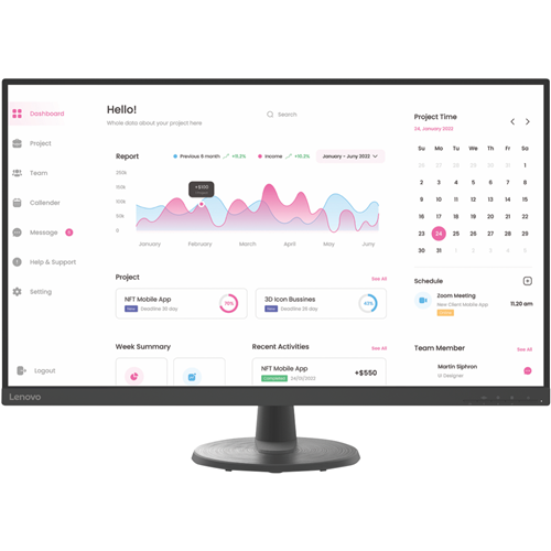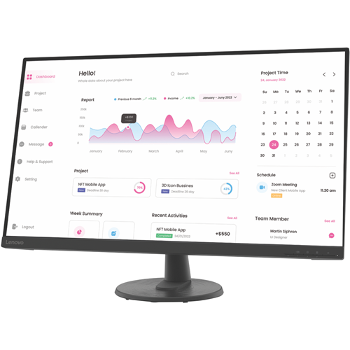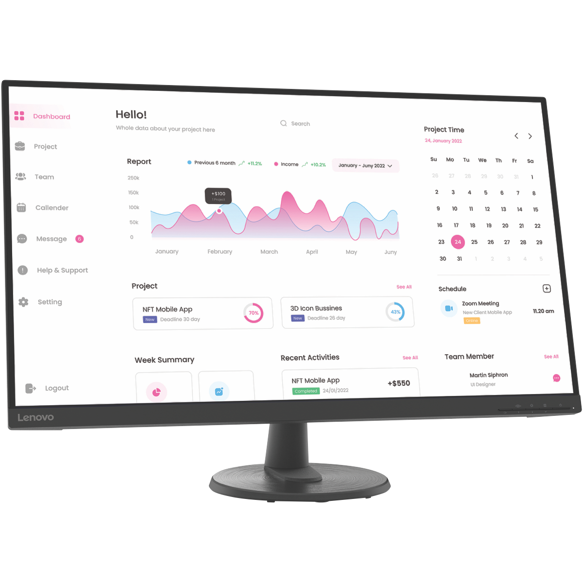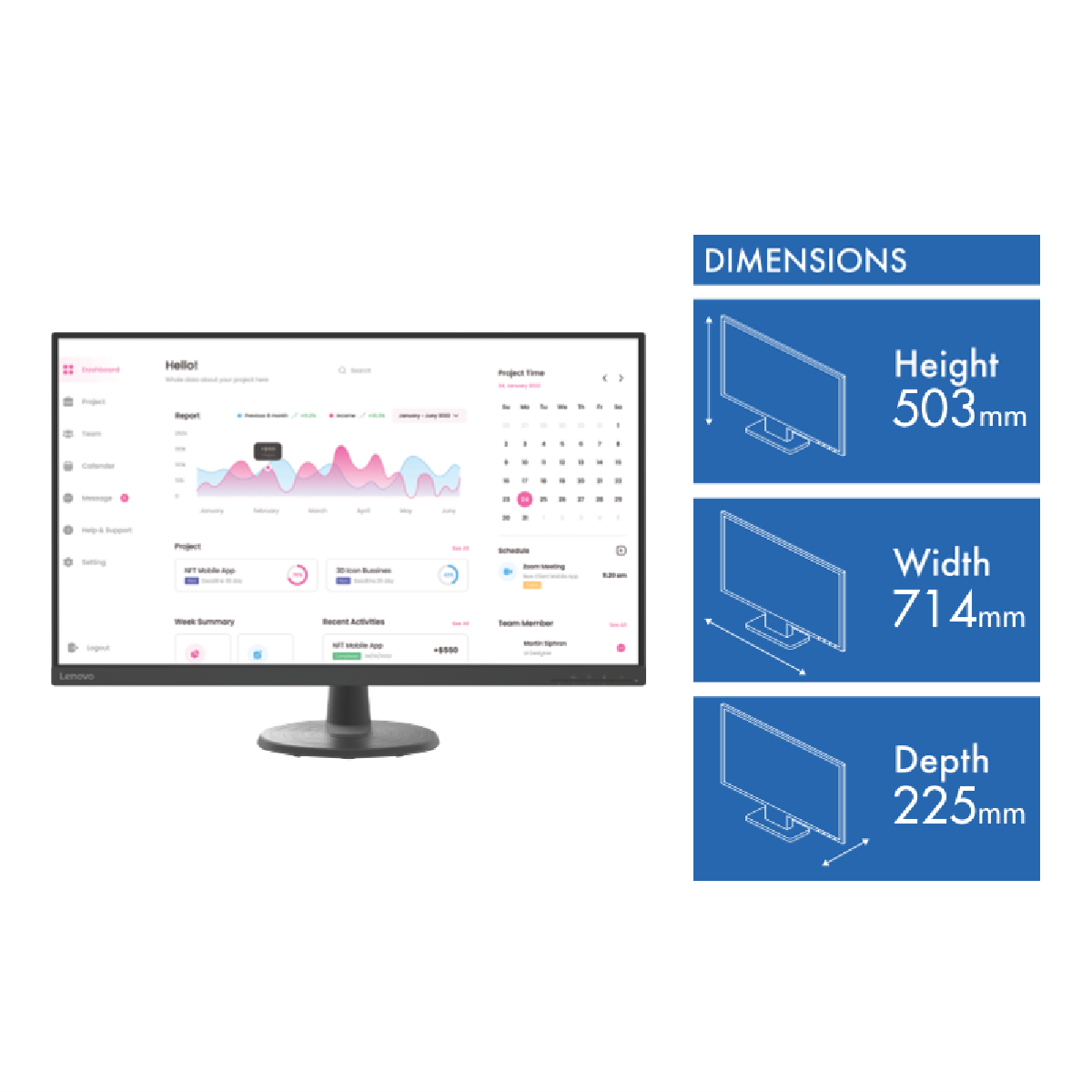 The Lenovo 31.5 D32-40 FHD Monitor (66FCGAC2AU) is an eye-catching full HD display that boosts productivity. Featuring a large 31.5-inch LED VA screen with 1920 x 1080 resolution this monitor delivers vivid colors and sharp details across the entire display. The wide 178-degree viewing angles ensure visibility from any position. AMD FreeSync technology delivers smooth tear-free visuals when gaming or watching action movies. Tilt swivel and height adjustments provide ergonomic comfort. Low blue light and flicker-free technologies help reduce eye strain during long workdays. With HDMI and DisplayPort inputs you can connect to various devices. Weighing just 6.3kg this monitor is easy to set up and transport. The manufacturer's part number for this product is 66FCGAC2AU. See for yourself how the Lenovo D32-40 can upgrade your desktop experience.
