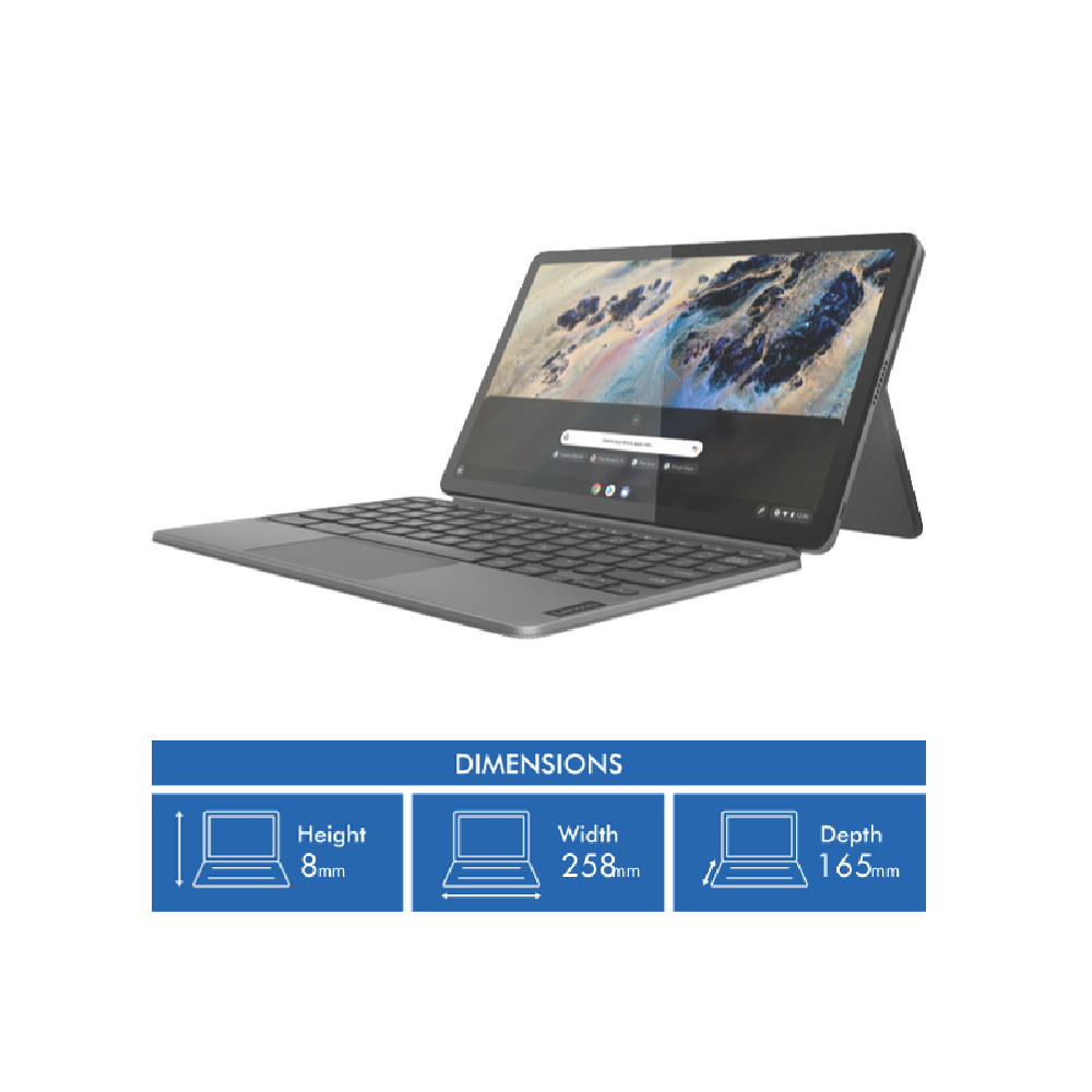 Take your productivity and entertainment on the go with the sleek and lightweight Lenovo Duet 3 11 SnapDragon 4GB 128GB eMMC Chromebook. This versatile 2-in-1 chromebook features a durable 11-inch 2K touchscreen display that allows you to tap swipe and scribble notes with the incredible precision of a stylus. Whether you're video chatting with friends binging your favorite shows or getting work done the Qualcomm Snapdragon 7c Gen 2 processor and 4GB of RAM deliver smooth lag-free performance. Store all your photos videos and files on the ample 128GB of storage. Weighing just over half a kilo the Lenovo Duet 3 slips easily into your bag or backpack. With up to 12 hours of battery life you can go about your day without worrying about recharging. Chrome OS offers the best of Google through the Google Play Store so you'll have access to millions of Android apps. For your video calls and photos Duet 3 comes equipped with a 5MP front camera and 8MP rear camera. Connect all your peripherals and devices through Wi-Fi 802.11 ac and Bluetooth 5.1. The Duet 3's versatility portability and power make it the perfect companion for school work travel or play. Pick up the Lenovo Duet 3 11 Chromebook today for an exceptional on-the-go experience. The manufacturer's part number for this product is 82T6001FAU.