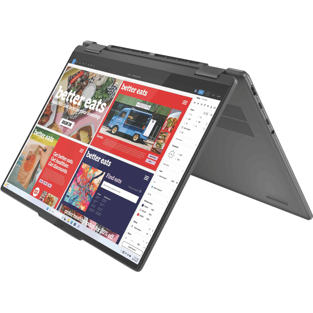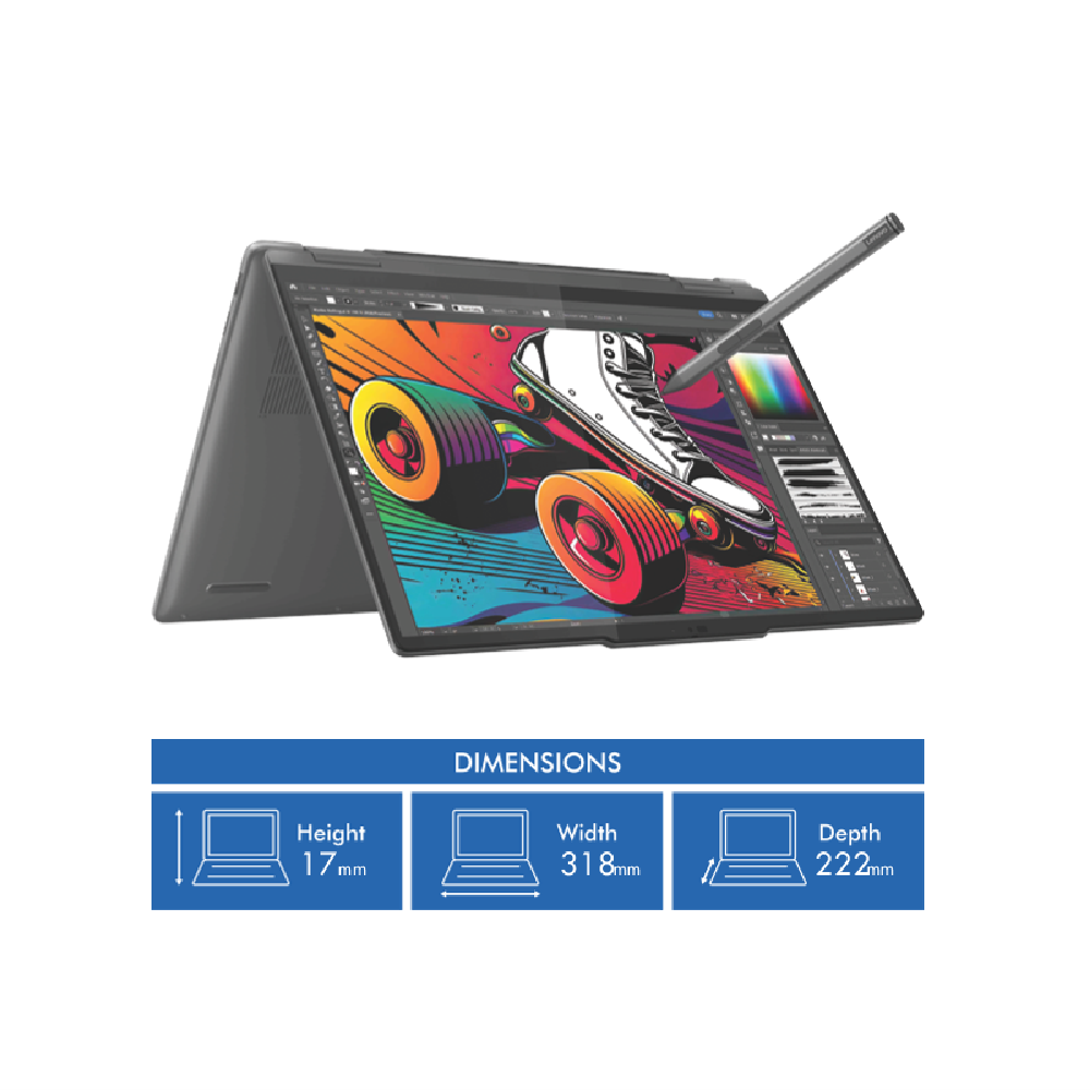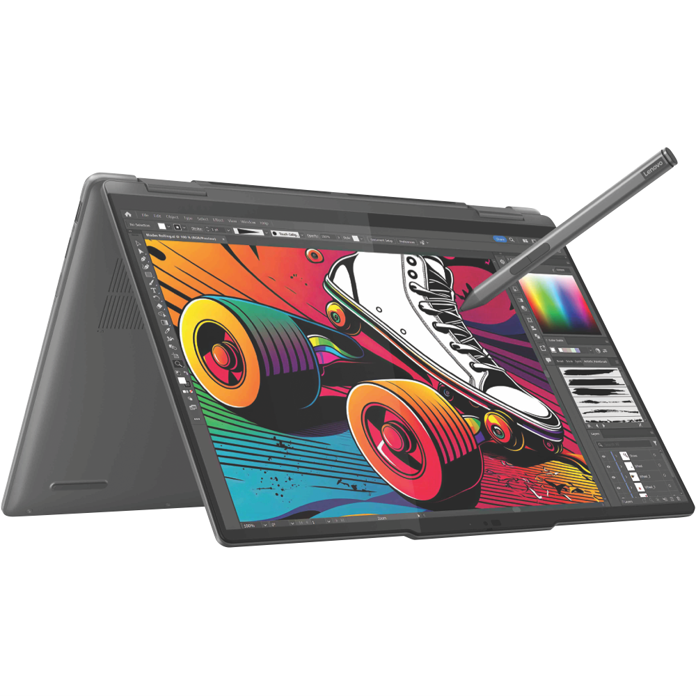 Bring your creativity to life with the sleek powerful Lenovo Yoga 7 14 EVO Core Ultra 7 16GB 1TB Touch 2in1 Laptop. This versatile 2-in-1 transforms effortlessly from laptop to tablet letting you sketch design and edit photos with the natural tactile feel of a pen on screen. The stunning 14 OLED display immerses you in vibrant colors and crisp details while the ultra-slim aluminum chassis exudes premium style at just 16.64mm thin and 1.49kg light. With the latest 12th Gen Intel Core i7 processor and Intel Arc graphics you'll blaze through demanding tasks and apps with incredible responsiveness. The massive 1TB SSD offers abundant high-speed storage for photos videos music and more. Long battery life keeps you productive anywhere while Wi-Fi 6E ensures ultra-fast reliable connections. Create collaborate and entertain your way with this capable clever 2-in-1. The Lenovo Digital Pen lets your drawings and notes flow seamlessly from screen to reality. A built-in privacy shutter keeps your webcam secure and Windows Hello logins are effortless. With Harman speakers and Dolby Atmos audio your music movies and calls sound rich and immersive. This is a 2-in-1 built for boundless imagination.The manufacturer's part number for this product is 83DJ000AAU.