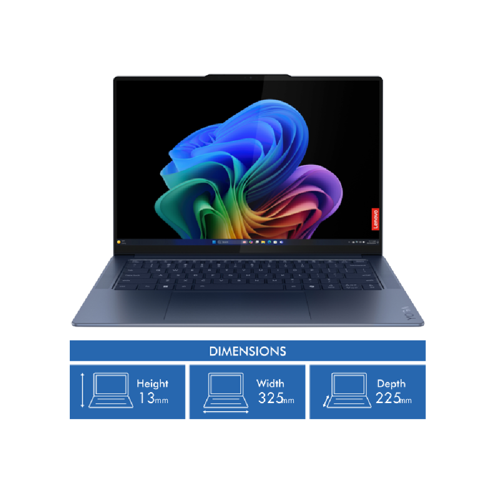 Introducing the Lenovo Yoga S7 an ultra-slim laptop that combines cutting-edge technology with sleek design. This 14.5 Copilot+PC features a stunning 3K PureSight OLED touchscreen display with a 90Hz refresh rate and 2944 x 1899 resolution bringing your content to life with vibrant colours and crystal-clear details. Powered by a Qualcomm Snapdragon X1E78100 processor with 12 cores and a 3.4GHz clock speed along with 32GB of memory and a 1TB SSD the Yoga S7 delivers lightning-fast performance for seamless multitasking and productivity. The Snapdragon X Elite Qualcomm Adreno GPU ensures smooth graphics rendering for immersive gaming and multimedia experiences. With its slim profile measuring just 296mm x 71mm x 512mm and weighing only 2.25kg this laptop is designed for effortless portability. The cosmic blue finish adds a touch of style to this powerhouse device. Enjoy convenient connectivity with 3 USB-C ports WLAN_2X2BE_320 and Bluetooth MB. The manufacturer's part number for this product is 83ED000BAU. Experience the perfect blend of performance and elegance with the Lenovo Yoga S7 14.5 Copilot+PC.