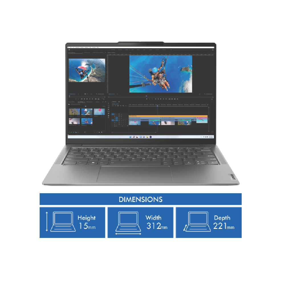 Embrace the sleek mobility of the Yoga Slim 6 14 EVO laptop with its powerful Intel Core i5 processor and vivid OLED display. This ultraportable Windows 11 Home laptop packs impressive performance into a slim lightweight chassis weighing just 1.35kg. The stunning 14 OLED screen with 1920x1200 resolution delivers exceptional clarity and immersive visuals. Plus with a long-lasting battery life of up to 18.5 hours you can stay productive and entertained anywhere. Seamlessly multitask across apps and browser tabs with the laptop's 16GB RAM. The generous 512GB SSD offers ample high-speed storage for photos videos music and files. Connect peripherals and accessories via HDMI Thunderbolt 4 and USB. Enjoy crystal-clear audio with Dolby Atmos-optimized stereo speakers. This versatile laptop comes with a 1-year warranty. Discover the perfect blend of portability power and vivid visuals with the Yoga Slim 6 14 EVO. Act now to enhance your productivity and entertainment on the go.