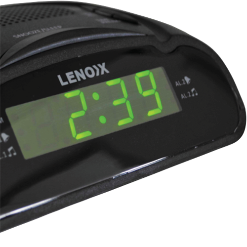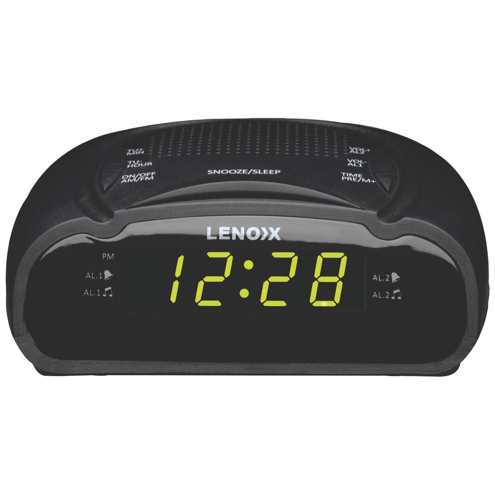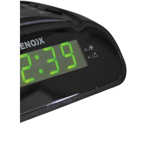 Wake up refreshed and on time with the sleek new Lenoxx Clock Radio AM/FM. This compact clock radio packs powerful sound and customizable alarms into a modern black design that looks great on any nightstand. With 300mW of total output the Lenoxx fills your bedroom with crisp clear audio from the AM and FM radio stations. Save your favorite stations as presets for quick tuning access. Set the dual alarms to wake you up to the radio or buzzer. The large LED display illuminates the time in green light. Snooze lets you catch a few more minutes of sleep before starting your day. The Lenoxx Clock Radio AM/FM runs on 2 AAA batteries (not included) for cordless convenience. Weighing just 0.264kg it measures 65mm high 145mm wide and 98mm deep for a nightstand-friendly footprint. Enjoy AM frequencies from 540 to 1600KHz and FM from 88 to 108MHz. With one year warranty from the manufacturer this clock radio delivers reliable performance. The manufacturer's part number for this product is CR21. Give yourself the gift of an effortless morning routine with the Lenoxx Clock Radio AM/FM.