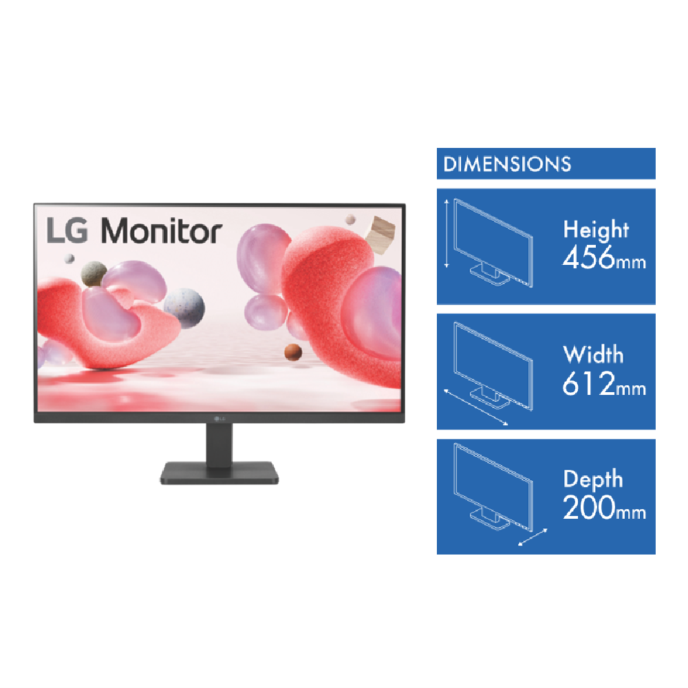 Experience vivid true-to-life visuals with the LG 27 FHD IPS Monitor. Its sleek black design and thin bezels blend seamlessly into any workspace while the 27-inch Full HD display immerses you in your content. With a quick 5ms response time this monitor delivers smooth motion and AMD FreeSync Technology provides stutter-free gaming. Tilt adjustment allows you to find the perfect viewing angle while built-in Reader Mode and Flicker Safe technology reduce eye strain. Connect your laptop gaming console or Blu-ray player easily through the HDMI and D-Sub inputs. LG packs this monitor with modern features and reliable performance. Bring home the LG 27 FHD IPS Monitor for an enhanced entertainment and productivity experience. MPN: 27MR400-B.AAU. Comes with a 3 year manufacturer's warranty.