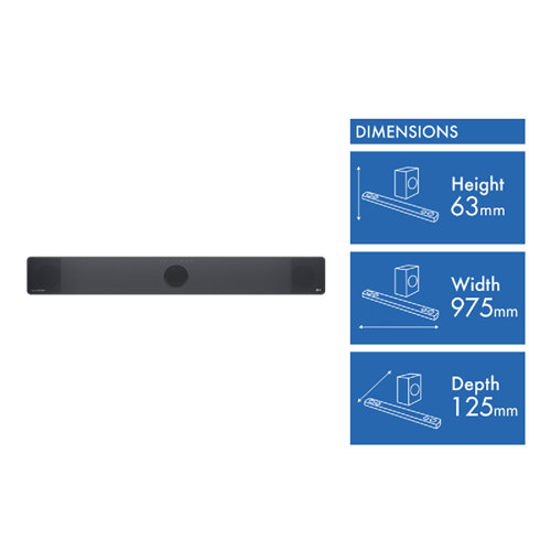 Immerse yourself in cinematic sound with the LG 3.1.3Ch 400W Dolby Atmos Soundbar. This sleek black soundbar pumps out 400 watts of pure audio power across 3 channels and 3 subwoofers for room-filling sound. Dolby Atmos and DTS:X technologies place sounds all around you in 3D space for an ultra-realistic listening experience. Bluetooth connectivity allows you to stream music wirelessly from your smartphone or tablet. The soundbar can also be used to enhance the audio from your TV with HDMI and optical inputs. Control the soundbar with your existing TV remote or use LG's intuitive remote app on your smartphone. With minimalist looks and easy setup this soundbar will transform your living room into a private home theater. Experience your music movies and games like never before with the LG 3.1.3Ch 400W Dolby Atmos Soundbar. The manufacturer's part number for this product is SC9S.