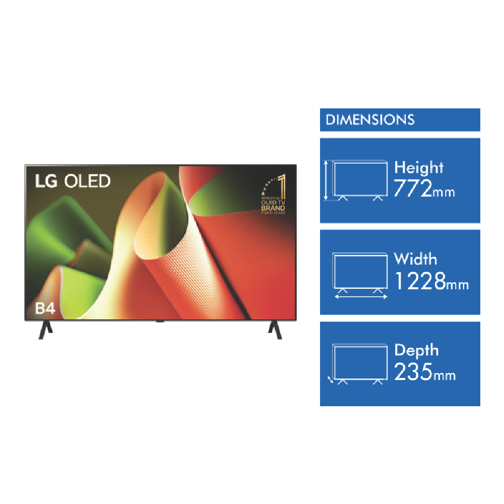 Experience cinema-quality visuals in your own home with the LG 55 OLED B4 4K Smart TV 24. This stunning OLED TV boasts a massive 55-inch screen size for immersive viewing and uses self-illuminating OLED technology for perfect black levels and vivid colors. With a razor-sharp 4K Ultra HD resolution and support for HDR formats like Dolby Vision this LG TV delivers incredible depth and detail in every scene. Powered by the a8 AI Processor 4K it optimizes picture and sound quality automatically. This 2024 model runs on LG's intuitive webOS platform and gives you access to all your favorite streaming apps. With built-in Google Assistant and Amazon Alexa you can control your TV and smart home devices completely hands-free. Gamers will appreciate the fast 120Hz refresh rate and Auto Low Latency Mode for smooth lag-free gaming. The stylish slim design looks great in any living room while the included Magic Remote makes controlling the TV a breeze. With stunning OLED visuals smart capabilities and a crystal clear 4K resolution the LG 55 OLED B4 4K Smart TV 24 will upgrade any home entertainment setup. OLED55B4PSA is the manufacturer's part number for this product.