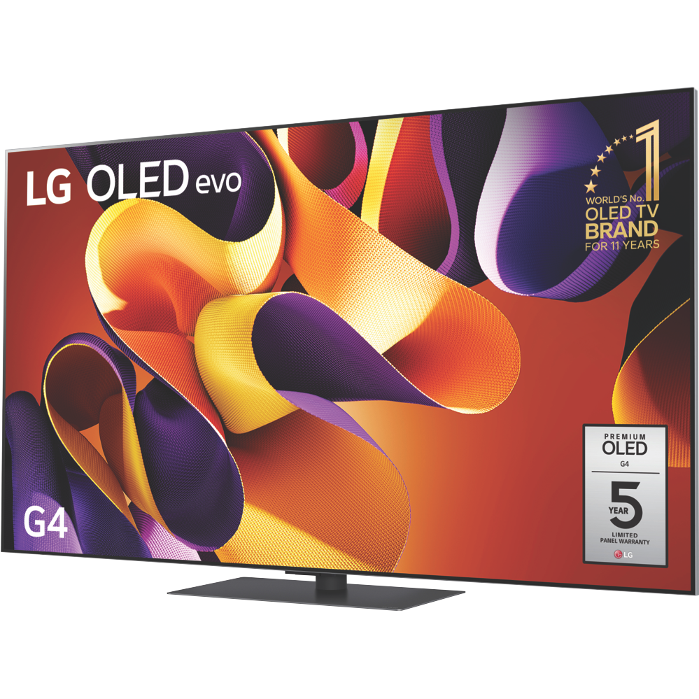 Breathtaking picture quality meets smart convenience with the LG 55 OLED 4K EVO G4 Smart TV 24. This 2024 model boasts OLED display technology for infinite contrast and perfect blacks. The 55-inch screen with 4K Ultra HD resolution provides over 8 million self-lit pixels for life-like clarity and detail. LG's latest a11 AI Processor 4K optimizes picture and sound while OLED Evo ensures boosted brightness for vibrant HDR images. Control your entertainment with built-in voice assistants access popular apps like Netflix and Youtube and game in smooth motion at up to 120Hz refresh rates. Connect devices via 4 HDMI and 3 USB inputs. Weighing just 17.9kg without the stand this slim TV can be wall mounted using a 300x200mm VESA bracket. LG backs this television with a 1 year warranty. The OLED55G4PSA is the manufacturer's part number for this product.