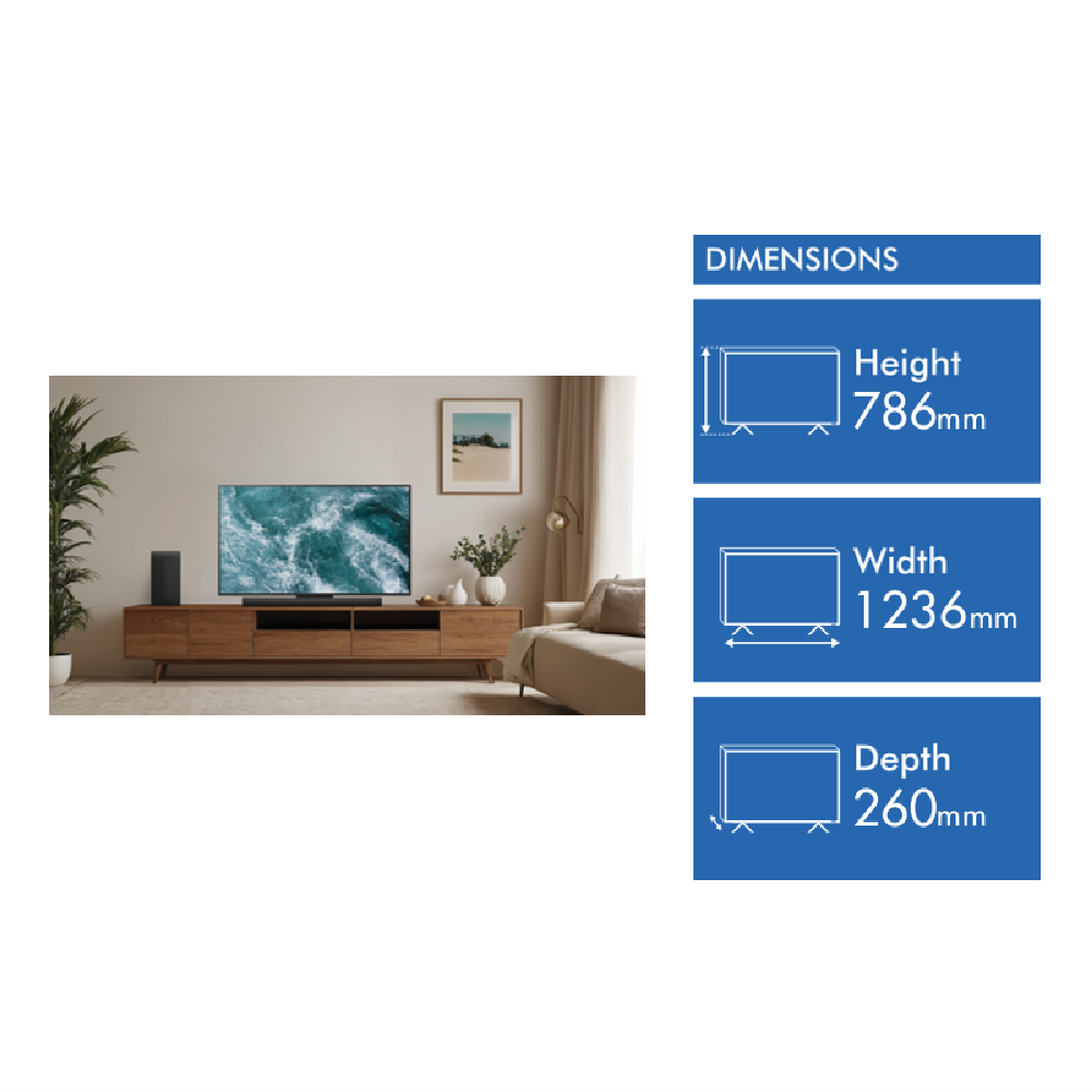 This LG 55 QNED TV brings the cinema experience home with its stunning 4K Ultra HD resolution. The Mini LED backlight and advanced local dimming create deeper blacks and brighter colours making movies and shows really pop. With a 120Hz refresh rate and low response time it's great for gaming too. The a8 AI Processor upscales content and adjusts picture settings automatically. Use voice commands with ThinQ or Microsoft Copilot to control the TV hands-free. Stream your favourite shows easily with the user-friendly webOS 25 smart platform. At just 30mm thin this sleek TV looks great mounted on the wall or on its stand. Experience next-level entertainment with the LG 55QNED86ASA - your living room will thank you.