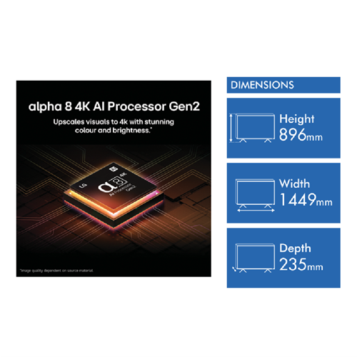 Looking for a TV that brings the cinema experience home? This LG 65 OLED B5 Smart TV delivers stunning 4K picture quality with deep blacks and vibrant colours. The 65-inch OLED screen shows every detail clearly even in bright rooms. It's great for gaming too with a super-fast 1ms response time and 120Hz refresh rate for smooth action. The a8 AI processor upscales content and adjusts picture and sound to suit what you're watching. You'll hear immersive audio thanks to Dolby Atmos support. Connect to streaming apps like Netflix and Disney+ through the user-friendly WebOS 25 system. Control it all with your voice using ThinQ or Microsoft Copilot. This energy-efficient TV has a 5.5 star rating to help keep power bills down. Mount it on the wall or use the included stand - either way the sleek design will look great in your living room. The LG OLED65B5PSA comes with a 1-year warranty for peace of mind.