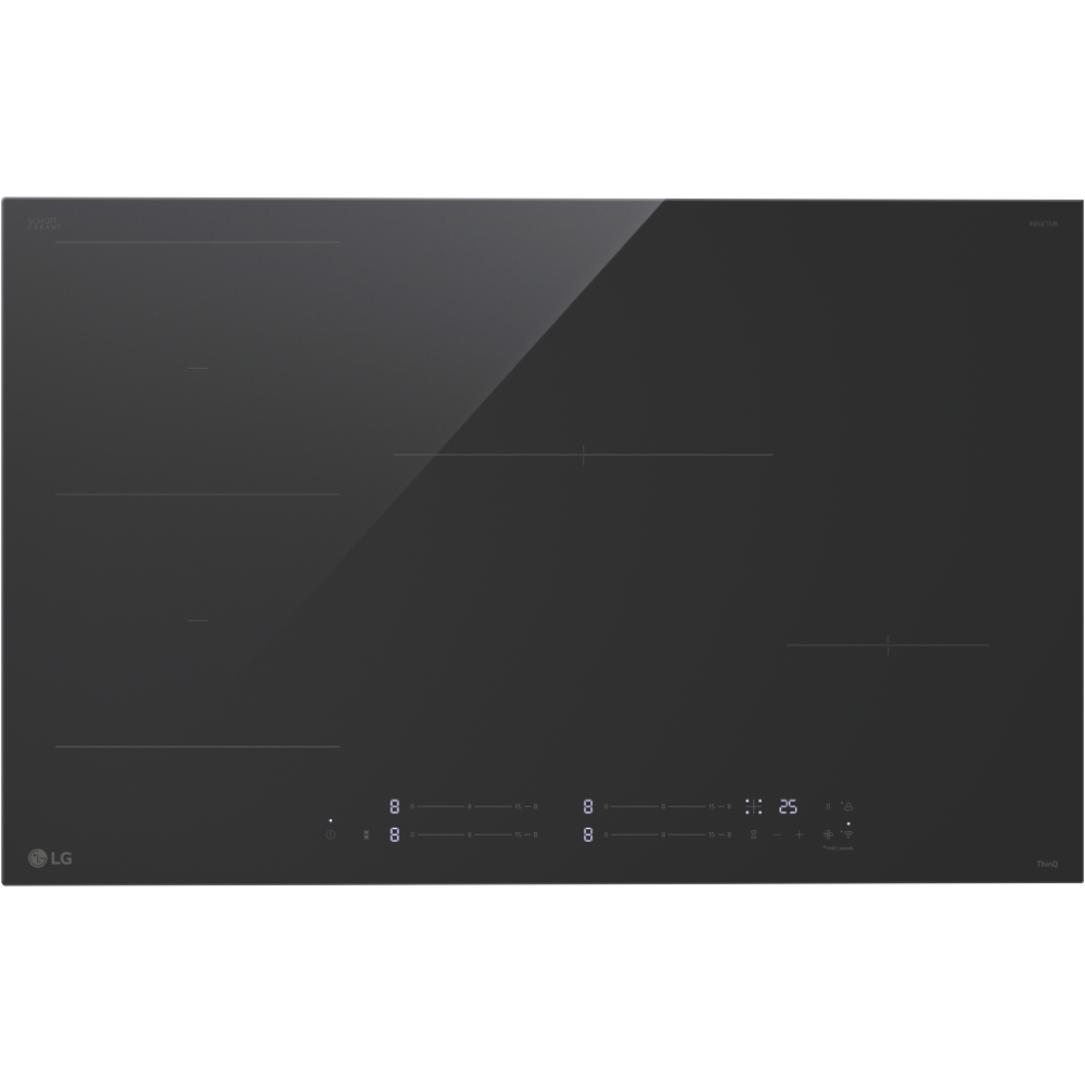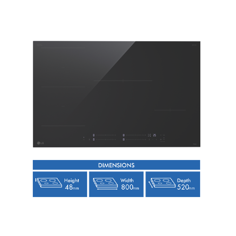 Revolutionize your cooking with the LG 80cm Induction Cooktop BCI807T4BG. This sleek black ceramic glass cooktop boasts four powerful induction zones that heat quickly and precisely giving you ultimate control over your culinary creations. With 15 power levels and a handy power boost function you can effortlessly tackle any recipe from a gentle simmer to a rapid boil. The intuitive touch controls and cook timer make operation a breeze while the stop & go function lets you pause cooking when needed. Safety is paramount with residual heat indicators child safety lock and automatic safety switch off for your peace of mind. Monitoring is made easy with the innovative ThinQ(Wi-Fi) functions and you can even pair it with your hood for seamless operation. Measuring 800mm wide 520mm deep and 48mm high this cooktop is designed to fit beautifully into your kitchen. Plus enjoy a 2 year manufacturer's warranty for added assurance. Elevate your cooking game with the LG 80cm Induction Cooktop BCI807T4BG. Model number BCI807T4BG.