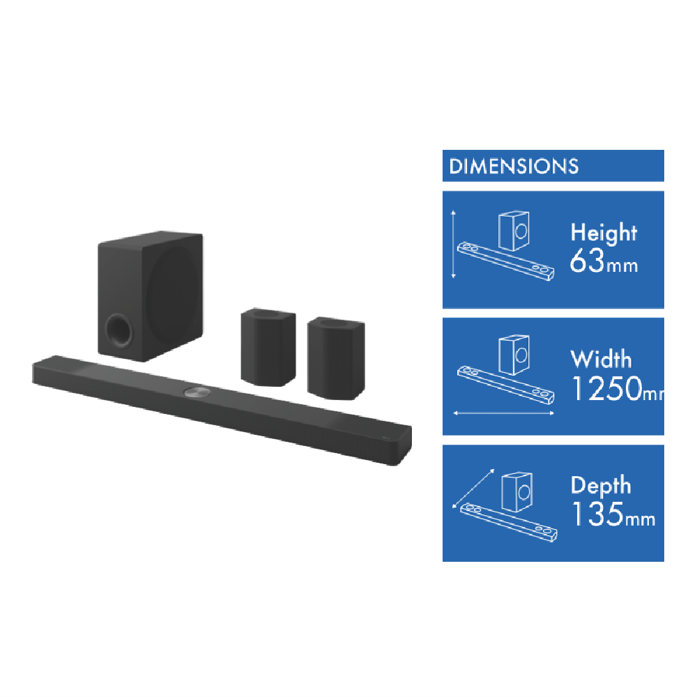 Product Depth (mm) Soundbar 135, Subwoofer 403