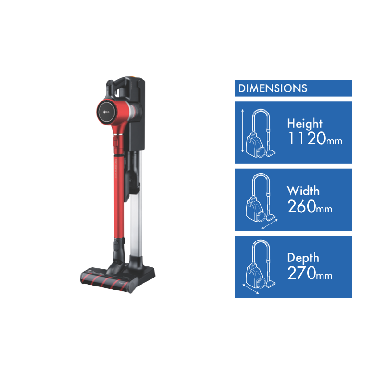 Get everything ever needed for a deep clean with the LG A9 CordZero Multi Stick Vacuum A9N-MULTI. LG's Aeroscience technology utilises strong mini whirlwinds of airflow that separate out dust particles white the Inverter Motor rotates at high speed for effective suction. Included is the Power Drive Nozzle that rotates the roller while vacuuming to effectively pick up dust and other floor particles through a 5 Step Filtration System capturing particles down to 2.5 microns in size. The filters are also removable and washable for a longer service life. Using the Normal mode the A9 CordZero has up to 50 minutes(1) of battery life and also has an interchangeable battery for longer cleaning sessions. The CordZero is very flexible allowing for wall mount storage on its charging dock floor standable and a Compact mode for a small size footprint in the home. Easily control power with one touch of the thumb including a turbo mode and keep overall control with four different telescopic pipe lengths and an ergonomic Opti-balanced Handle. Make use of the included accessories like the Combination and Crevice tools to get into every nook and cranny. The Flex model of the Cord Zero range comes with two batteries Multi-Surface and Hard Floor Power Drive Nozzles plus an additional Handy Tool Kit. The vacuum is covered by a total 10 Year Warranty(2) for long term peace of mind. Disclaimers: (1) With one battery directly charged from charging station run time without Power Drive Nozzle for each mode - Normal Power and Turbo is up to 50 mins 11 mins and 6 mins respectively. (2) 12 month Battery warranty 2 years parts and labour 8 additional years on motor (parts only).