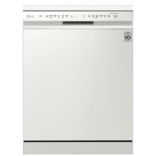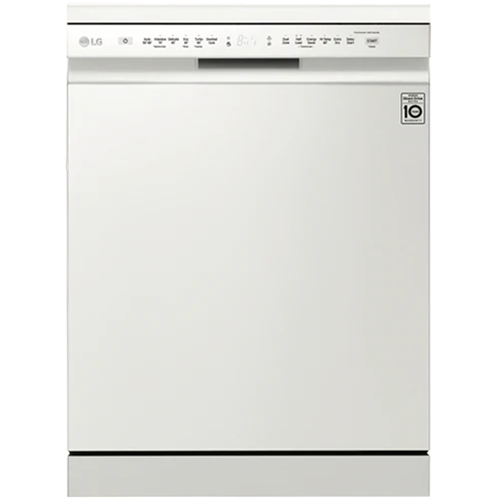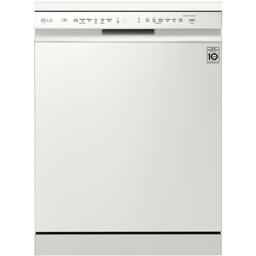 Wash up quick with the LG QuadWash White Dishwasher XD5B14WH. A minimalist exterior couples with a subtle micro LED display to create a statement most dishwashers can't match. Clean from multiple angles thanks to QuadWash's four rotating blades including two oscillating nozzles that pulse and deliver water thoroughly. Select Turbo Cycle to wash light or moderately dirty dishes in 59 minutes(1). LG's own Direct Drive Motor is made with less moving parts for reliable and quiet cleaning and is also backed by a 10 Year Warranty(2). Choose Dual Zone Wash to lightly clean delicate dishes and heavily scrub dirty pots and pans during the same wash. Load the dishes your way with folding tines an adjustable height upper rack and the Glide Rail making drop off and pickup smooth no matter how heavy the load is. Disclaimers: (1) Reduced load size (maximum 10 place settings) required. Cycle is Wash only. (2) 2 years parts and labour plus 8 years on motor (parts only).