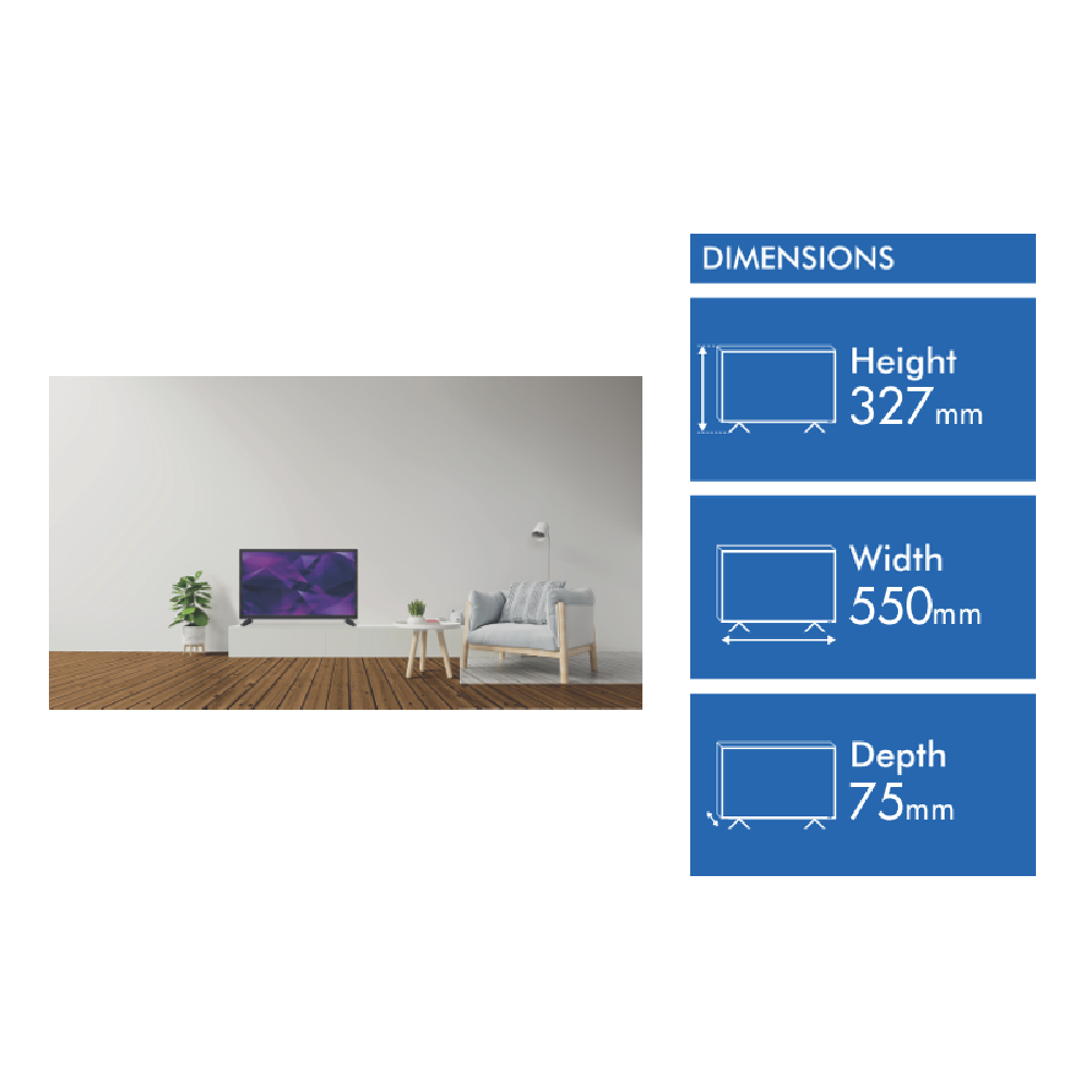 Elevate your entertainment experience with the Linsar 24 HD WebOS Smart TV featuring a vibrant LED display and versatile 12V adaptor for on-the-go viewing. This compact television delivers stunning visuals with its 1366 x 768 HD resolution bringing your favourite content to life in crisp detail. Powered by the intuitive WebOS platform you can easily access popular streaming apps like Netflix YouTube Stan Amazon Prime Video and Disney Plus all from the comfort of your home. With 2 HDMI and 2 USB inputs connecting your devices is a breeze while the 2 x 8W speakers provide immersive audio to complement the stunning picture quality. Measuring 550.3mm wide 326.8mm high and 75mm deep this sleek TV fits seamlessly into any room and includes a 100 x 100 VESA wall mount for flexible placement options. The manufacturer's part number for this product is LS24HDNF-12V. Enjoy the convenience and quality of the Linsar 24 HD WebOS Smart TV backed by a 1-year manufacturer's warranty for added peace of mind.