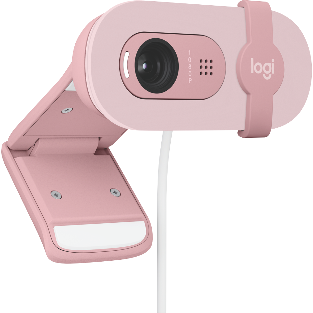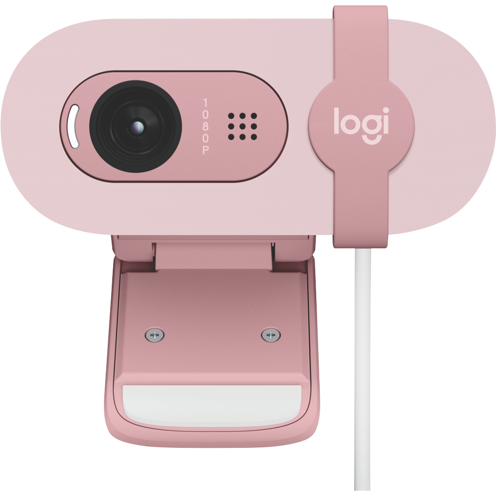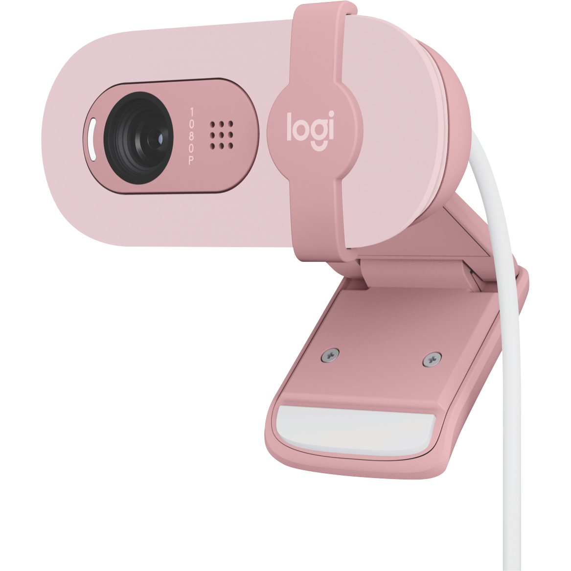 Looking for a webcam that's pretty in pink and packs a punch? Say hello to the Logitech Brio 100 Full HD 1080p Webcam in Rose. This little beauty delivers crystal-clear video quality with its 1920 x 1080 resolution perfect for all your video calls and streams. The camera's got a 58-degree field of view so you can fit more into the frame without any awkward cropping. And don't worry about being heard the mic picks up your voice from up to 3 feet away. Plus it works with Windows macOS ChromeOS and just about any video calling platform you can think of. Just plug it in via USB-A and you're good to go. 960-001624.