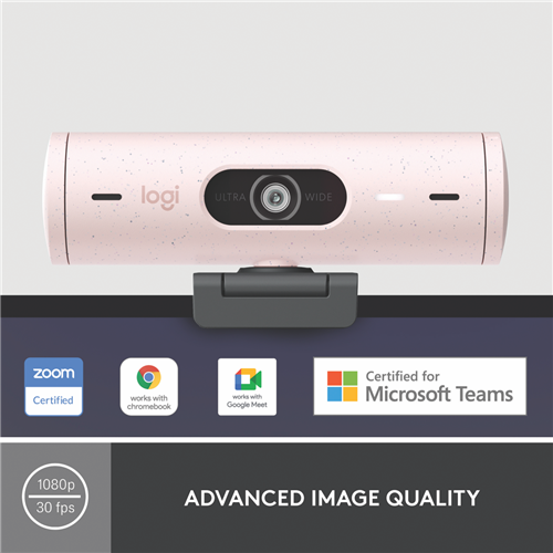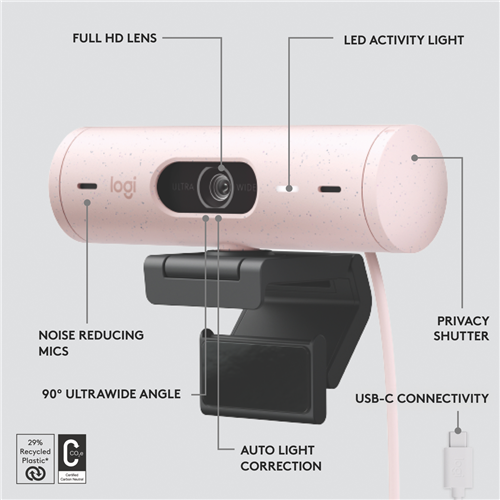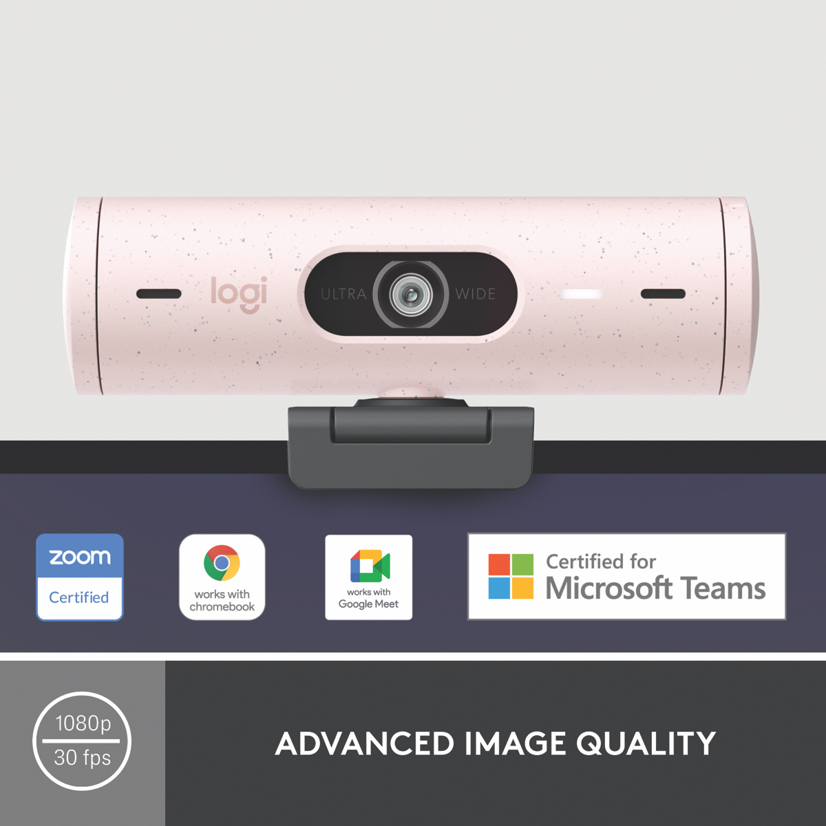 Capture life's special moments in stunning detail with the Logitech BRIO 500 Full HD 1080p webcam. This sleek rose-colored webcam delivers razor-sharp video quality up to 1080p resolution at 30 frames per second letting you look your best on video calls live streams and recordings. With advanced HDR technology RightLight 3 automatically adjusts to your lighting conditions to produce true-to-life video in any environment. The 5x HD zoom allows you to get up close and personal while the 90-degree field of view is ideal for solo streaming or small group calls. With dual mics that reduce background noise you'll always come through loud and clear. Compatible with Windows 8 or later macOS 10.10 or later and ChromeOS the BRIO 500 webcam makes it easy to look professional from the comfort of home. For high-quality videoconferencing and content creation that captures you at your best choose the Logitech BRIO 500 Full HD 1080p webcam today. The manufacturer's part number for this product is 960-001433.
