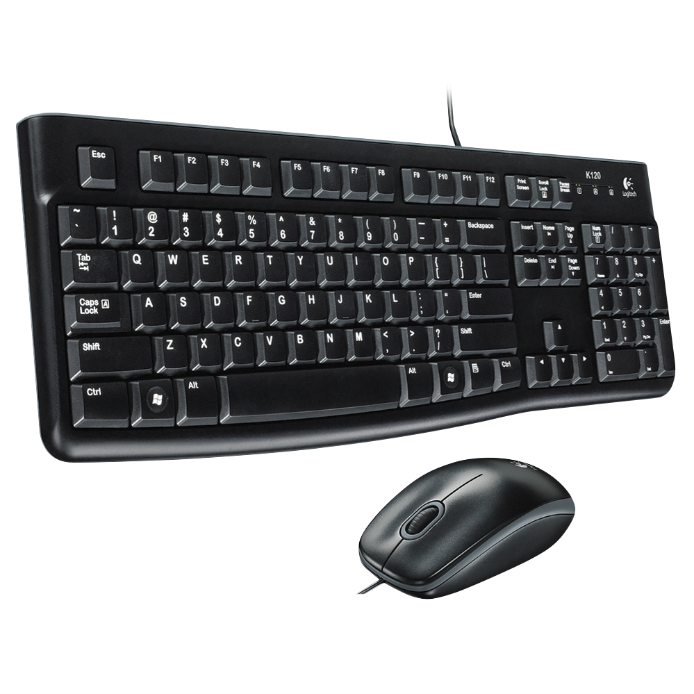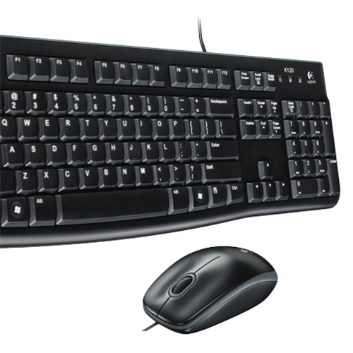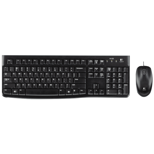 Step into a world of precise control and comfortable typing with the Logitech Corded Mouse and Keyboard MK120. This sleek black keyboard and mouse combo connects via USB to provide a complete desktop solution for home or office. The full-size keyboard features responsive quiet keys that can withstand up to 10 million keystrokes while the contoured mouse boasts a 1000 DPI optical sensor for smooth accurate cursor control. Measuring 450 x 155 x 23.5mm and weighing 550g the slim keyboard is designed for comfortable typing with low-profile keys that make less noise than traditional keyboards. The compact 62 x 113 x 38mm mouse weighs only 90g for easy manoeuvrability and its rubber side grips ensure a secure hold. Together these peripherals offer the convenience of a plug-and-play setup - simply connect the included USB cable and you're ready to go. So upgrade your desktop with the MK120 combo today. The manufacturer's part number for this product is 920-002586. Check out the Logitech Corded Mouse and Keyboard MK120 now for an excellent typing and clicking experience.