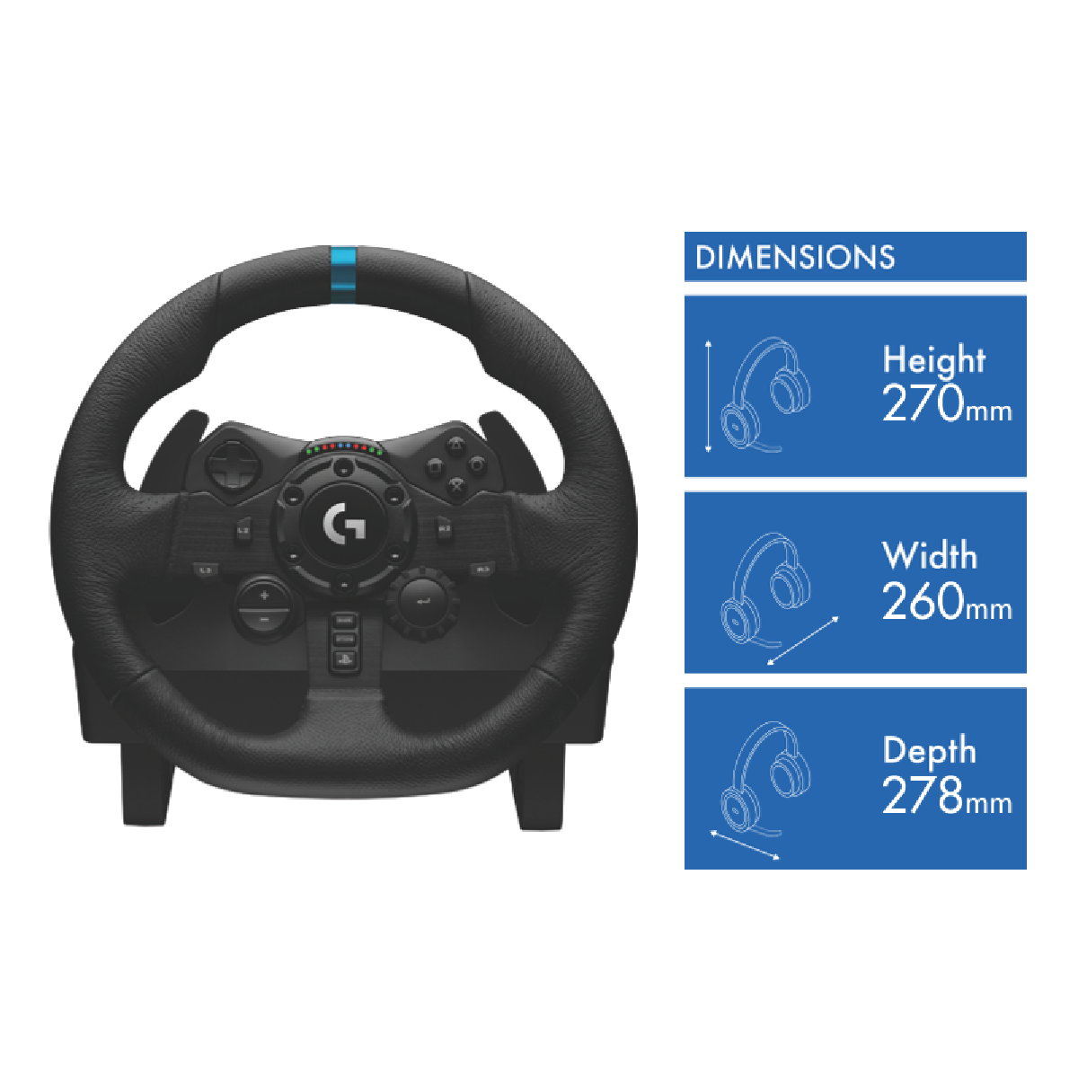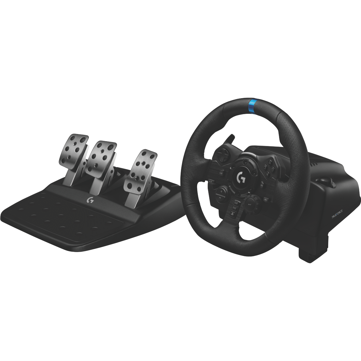 Take your racing simulation to the next level with the Logitech G923 Driving Force Race Wheel. This high-performance gaming wheel for PS5 PS4 and PC delivers an ultra-realistic driving experience with true-to-life force feedback and hand-stitched leather detailing on the wheel grip. Feel every bump turn and traction change through the responsive dual-motor force feedback that brings your virtual driving to life. The high-precision Hall-effect steering sensor with anti-backlash hardware offers exceptionally smooth accurate control while the responsive pedal set with progressive brake provides a natural feel. Designed for maximum adjustability this wheel features sturdy clamps and gear shifters to suit your ideal racing position. Whether you're a casual racer or a pro the G923 injects extraordinary realism into your gameplay. Backed by Logitech's two year warranty the G923 Driving Force Race Wheel elevates your driving simulation setup. Step up your racing game with the realism and precision of the G923. The manufacturer's part number for this product is 941-000152.