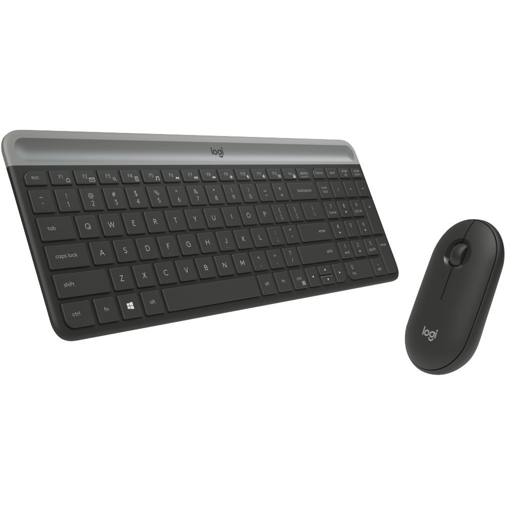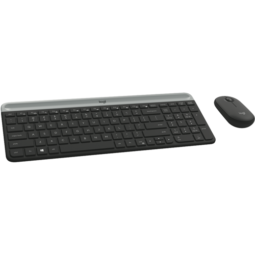 Stay connected with this Logitech wireless keyboard and mouse combo. The compact MK470 delivers quiet comfortable typing and smooth precise mousing in an affordable space-saving design. Enjoy the freedom of wireless operation via Bluetooth connectivity with up to 18 months of battery life on a single set of AA batteries. The slim lightweight keyboard features whisper-quiet membrane keys while the contoured mouse fits comfortably in your hand. Use them together or separately - the tiny Logitech Unifying receiver stays in your laptop so there's nothing to lose. With a wireless operating range of up to 10 meters you'll enjoy clutter-free productivity. Logitech's advanced 2.4 GHz wireless technology ensures a reliable secure connection. The graphite finish looks professional in any home or office setting. This handy combo lets you work play and navigate with ease. Logitech supports the MK470 with a one-year limited hardware warranty. The manufacturer's part number for this product is 920-009182. Check out the MK470 for a versatile reliable wireless keyboard and mouse solution.