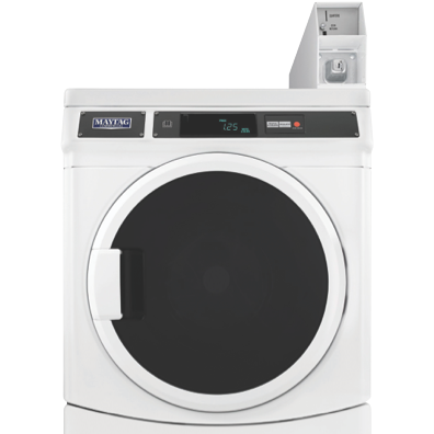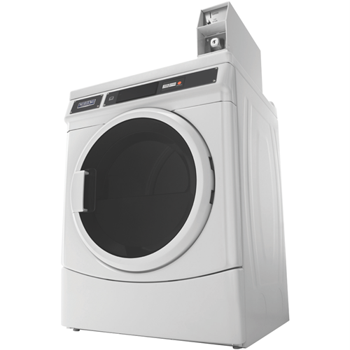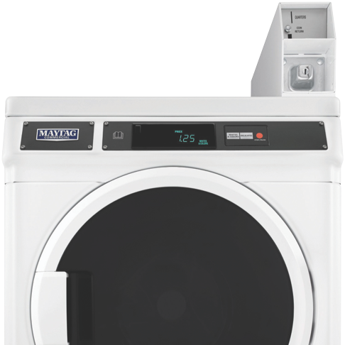 Optimize your laundries drying performance and facility efficiency with this front-load dryer featuring TurboVent Technology built in the USA by Maytag Commercial. TurboVent Technology on this large 9kg Coin Drop dryer is engineering for the longest possible flue length on site giving you more installation options on site. An industrial-strength cabinet and porcelain-enamel top are robust and provide the durability required for high-traffic commercial laundry environments. With built-in diagnostics and front-panel access for streamlined service and backed with a five-year limited warranty. All parts covered. Maytag® Commercial Laundry knows exactly what dependability means to you. lectric Commercial Dryers come without a power cord and will require hardwiring into a dedicated 25AMP circuit on site. Gas dryers require installation as per local gas code. All commercial dryers require fluing to external air.