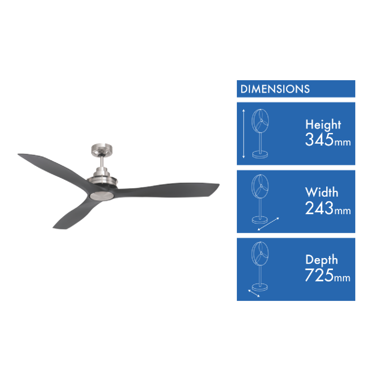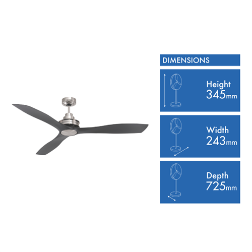 Command attention in your living space with the Mercator Clarence 1400 NL ABS Blade Ceiling Fan. Crafted with a brushed chrome and black finish this 3-speed fan boasts a 141cm blade diameter to keep you cool in the summer and warm in the winter with its reversible airflow. Powered by a 75W motor it delivers an impressive 12336m3 per hour airflow to circulate fresh air throughout any room. With 3 speed settings you can adjust the fan to your comfort level. Sleek and minimalist this fan comes without a built-in light so you can style it to suit your space. Enhance your home with superior air circulation and customizable comfort with the Mercator Clarence Ceiling Fan. The manufacturer's part number for this product is FC760143BC. Bring stylish airflow to your home today.