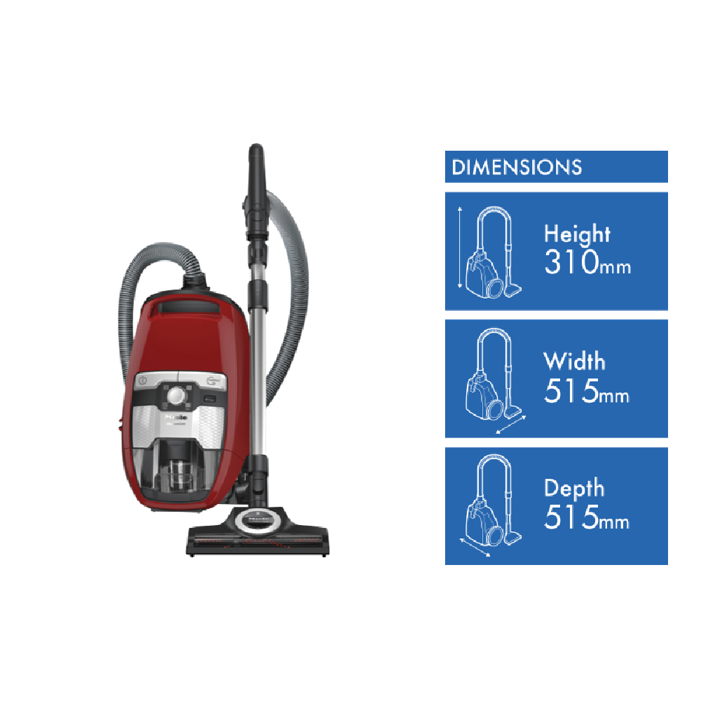 Discover a new standard of cleaning you can rely on with this premium Miele Blizzard CX1 Cat & Dog vacuum cleaner. The Blizzard SKCR3 offers impressive suction power through its Vortex technology combining its single cyclone motor and immense airway velocity to leave your floors immaculately clean. Teamed with a specially designed Turbobrush with four rotating rollers it gently removes embedded hair lint and fluff from carpets for pet hair-free surfaces. The CX1 is highly efficient allowing for quick mid-vacuum dusting with the integrated dust brush on its ergonomic handle and easy to access upholstery and crevice nozzles stored on the vacuum itself. Plus this vacuum is extremely low-maintenance with its ComfortClean self-cleaning function to maintain the HEPA AirClean Lifetime filter using innovative sensor technology without having to lift a finger. The Miele Cat & Dog bagless cleaner goes through a three stage filtration process separating course debris from fine dust to capture 99.95%* of allergens for a hygienic clean. And thanks to the push button bin emptying mechanism it's easy to dispose of the dirt straight into the bin keeping your hands clean. A vacuum powerhouse crafted with German efficiency and innovation you'll love the convenience of Miele's first bagless cleaner to powerfully suction pet hair and dirt around the home.*Performance was confirmed by the medical organization Allergy UK and certified as suitable for those with allergies. The Miele Blizzard CX1 has been given the quality seal of approval for its powerful overall dust retention capacity.