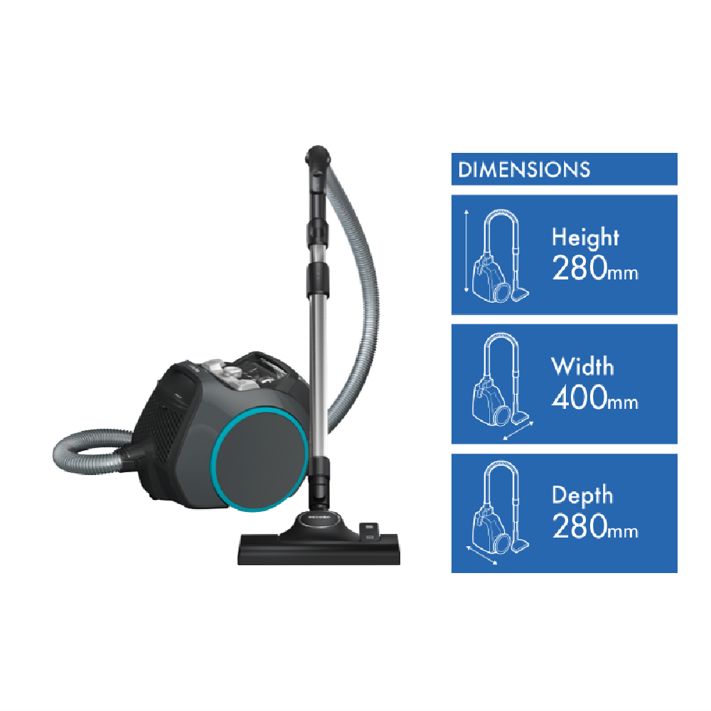 The Boost Cx1 bagless vacuum from Miele combines outstanding performance with very compact dimensions. Its handy size makes it the ideal choice for homes where space is at a premium. It can be manoeuvred with ease and stowed away to save space. Its light weight also makes it easy to carry. The Boost CX1 will stand safe and secure on any stair or step. Vacuuming made easy! With TrackDrive it follows obediently on the heels of its user. Wheels on the sides of the appliance lend it stability and direction. This protects both furniture and door frames from damage. What s more it can be manoeuvred with ease and convenience for outstanding vacuuming results without compromise.