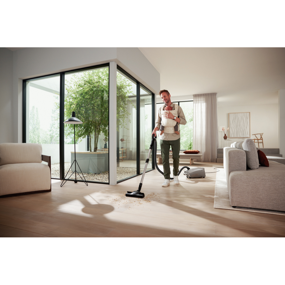 Our Miele Guard vacuum cleaners offer the ideal combination of maximum suction power and unlimited running time perfect for large areas. With a powerful fan optimised airways and matching floorheads they ensure particularly thorough cleaning. The new vacuum cleaner bag system with ComfortFit combined with the powerful exhaust filters delivers first-class performance and hygiene so you can benefit from reliable powerful cleaning. With our innovative filter technology and matching vacuum cleaner bags you can enjoy all-round hygiene in your home with a filter performance of 99.99%(1). The ComfortFit system makes it particularly easy to insert vacuum cleaner bags while the secure closure ensures that no dust escapes and that the bag can be changed in a particularly hygienic manner. Furthermore the new vacuum cleaner bags are made of more than 80% PCR. The HyClean Pure TU vacuum cleaner bags which are compatible with the Guard L1 model series are perfectly tailored to the appliance in question and offer outstanding performance and efficiency. The automatic ComfortFit lock system ensures a tight connection between the vacuum cleaner bag and appliance and is responsible for keeping the dust safely sealed inside protecting the vacuum cleaner and guaranteeing maximum filtration. Durable: tested for the equivalent of 20 years(2) use