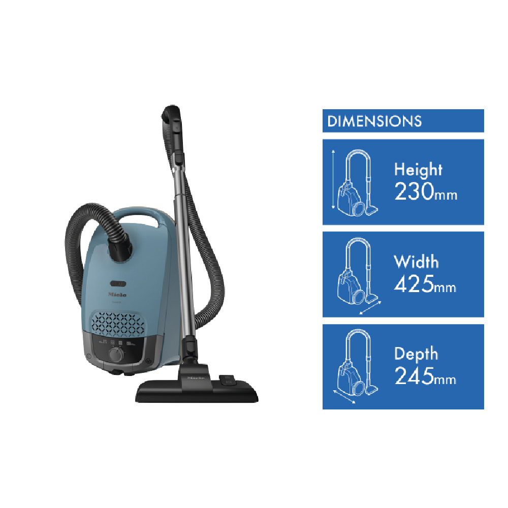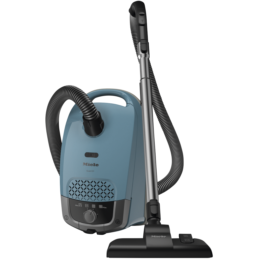 Ideal for smaller homes: with its low weight of around 5.6 kg and its compact dimensions the Miele Guard S1 allows for effortless cleaning and is particularly easy to handle and manoeuvre. Its small size also means that it takes up very little space when stored away. Our Miele Guard vacuum cleaners offer the ideal combination of maximum suction power and unlimited running time perfect for large areas. With a powerful fan optimised airways and matching floorheads they ensure particularly thorough cleaning. The new vacuum cleaner bag system with ComfortFit combined with the powerful exhaust filters delivers first-class performance and hygiene so you can benefit from reliable powerful cleaning. The suction power control is electronically regulated via a rotary selector. Labels for different applications help to select the optimum power level. Our high-quality universal floorhead allows you to vacuum all floors conveniently and gently. The practical nozzle glides smoothly and effortlessly over your hard floors or carpets and even removes hair particularly thoroughly. Scratch-sensitive floors are reliably protected and cleaned with care. 99.99 %(1) dust retention capacity with AirClean filter. Durable: tested for the equivalent of 20 years(2) use