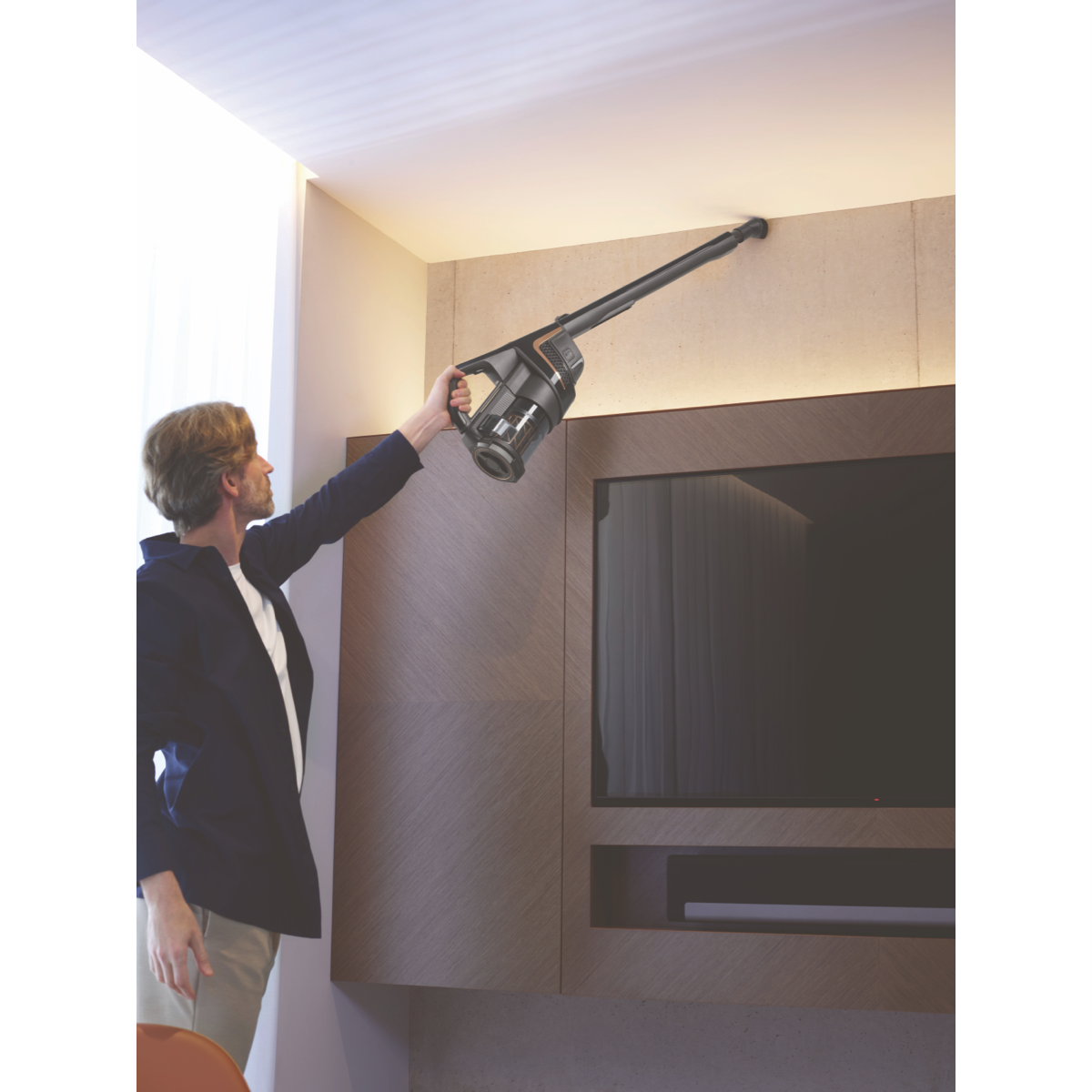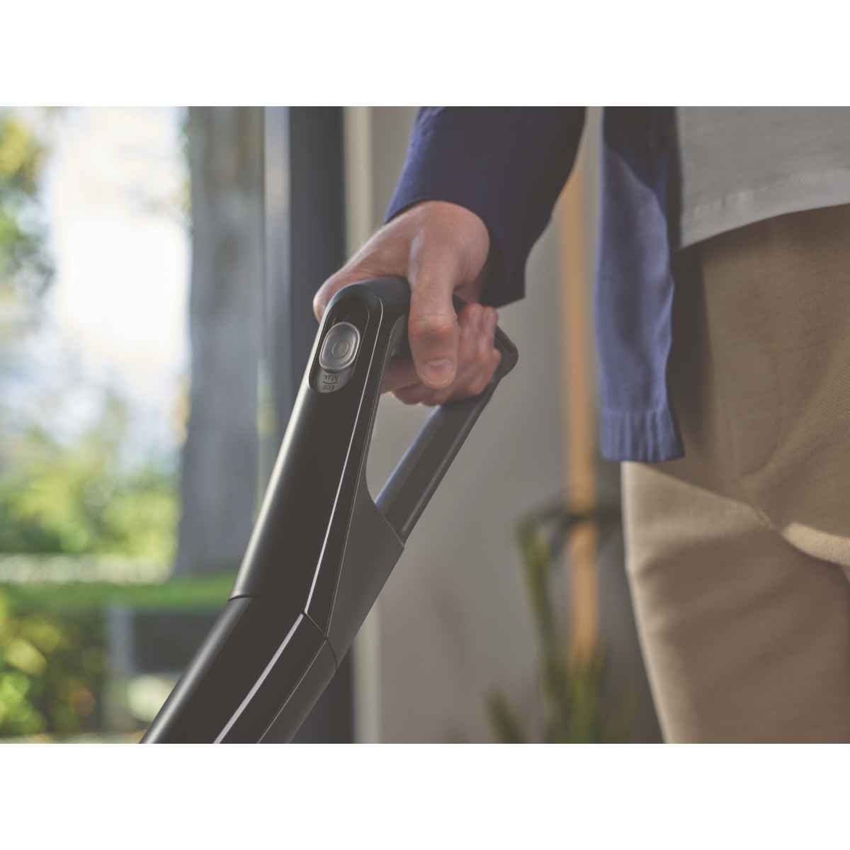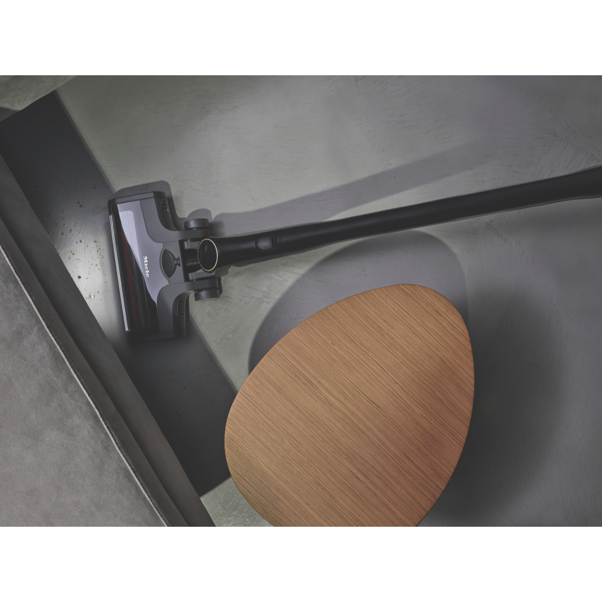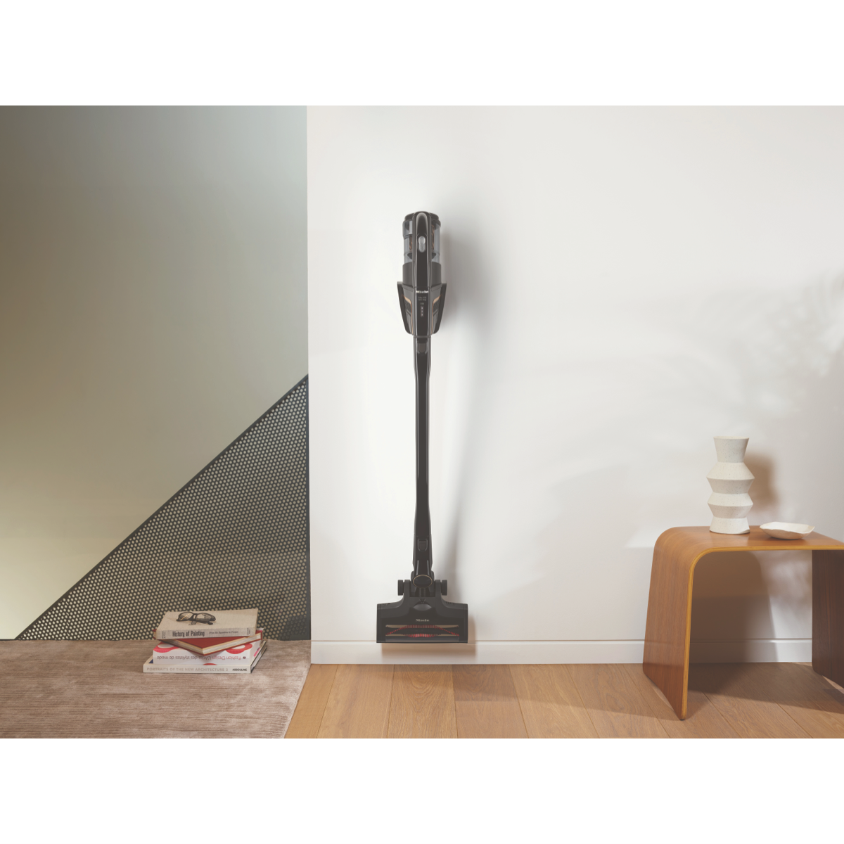 The Miele Triflex HX2 Cat & Dog Obsidian Black 11827140 vacuum is an excellent option for effortless cordless cleaning. It features a German made Digital Efficiency Motor that's 60% more powerful than the previous model(2) a HEPA-13 allergy certified over 99.99% particle pickup rate(1) and fantastic included Electro Compact Brush that's great for pet hair on upholstery among other surfaces. Miele's unique 3in1 setup allows the vacuum module to be installed at the top or bottom of the stick for either flexibility or lightweight uses as well as use independent of the stick to allow for tight spaces to be tidied. Clean your filter easily with ComfortClean ensuring no dust or hair gets stuck and with 500ml of capacity it can ensure that your vacuuming sessions are quick and pain free. Disclaimers: (1) Applies to power setting 1 without Multi Floor XXL ElectroBrush attached. (2) In accordance with EN 1822/2011 & 60312-1 (3) Cleaning performance compared to a Miele Complete C3 (SGEF3) cylinder vacuum cleaner with STB 305-3 TurboBrush (dust removal from carpet and hard floor with crevices fibre removal from carpets) according to IEC 62885-2.