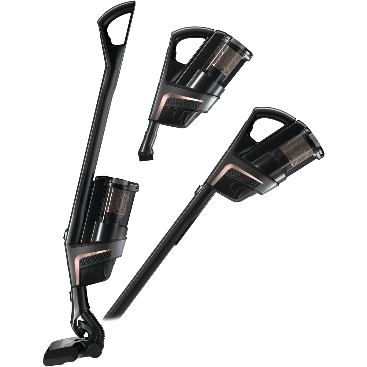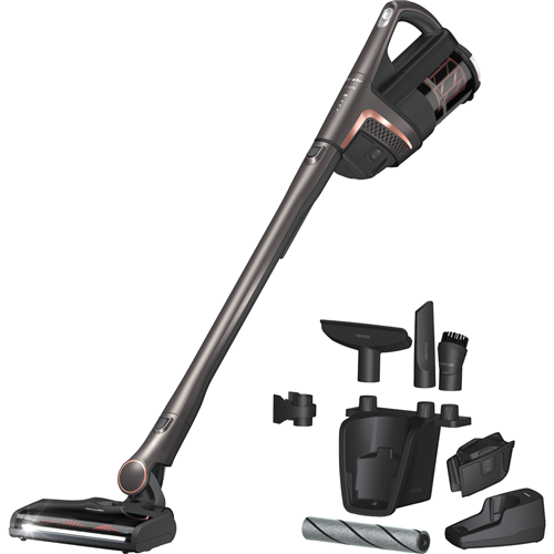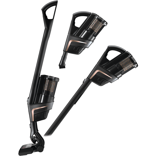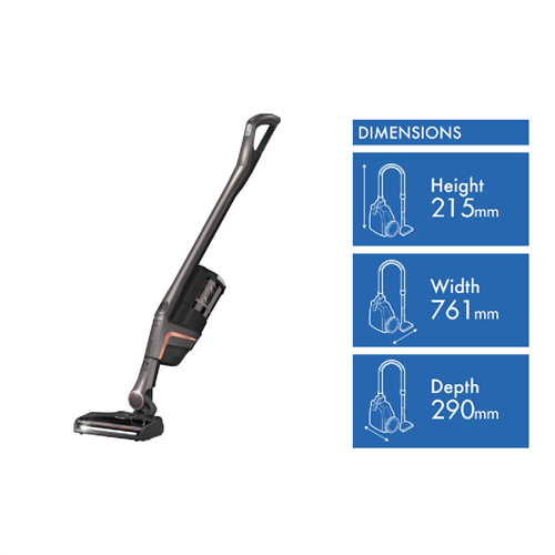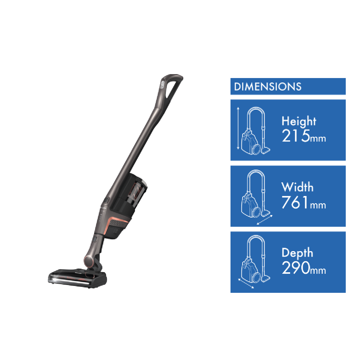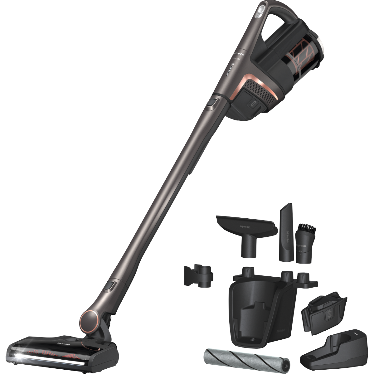 The Miele Triflex HX2 Pro Bronze Pearl 11827150 vacuum is a top of the line option for effortless cordless cleaning. It features a German made Digital Efficiency Motor that's 60% more powerful than the previous model a HEPA-13(2) allergy certified filter with over 99.99% particle pickup rate and spare battery offering a total combined two hours of operation(1) over 250 metres squared. Miele's unique 3in1 setup allows the vacuum module to be installed at the top or bottom of the stick for either flexibility or lightweight uses as well as use independent of the stick to allow for tight spaces to be tidied. Clean your filter easily with ComfortClean ensuring no dust or hair gets stuck and with 500ml of capacity it can ensure that your vacuuming sessions are quick and pain free. Disclaimers: (1) Applies to power setting 1 without Multi Floor XXL ElectroBrush attached and the usage of 2 batteries. (2) In accordance with EN 1822/2011 & EN 60312-1