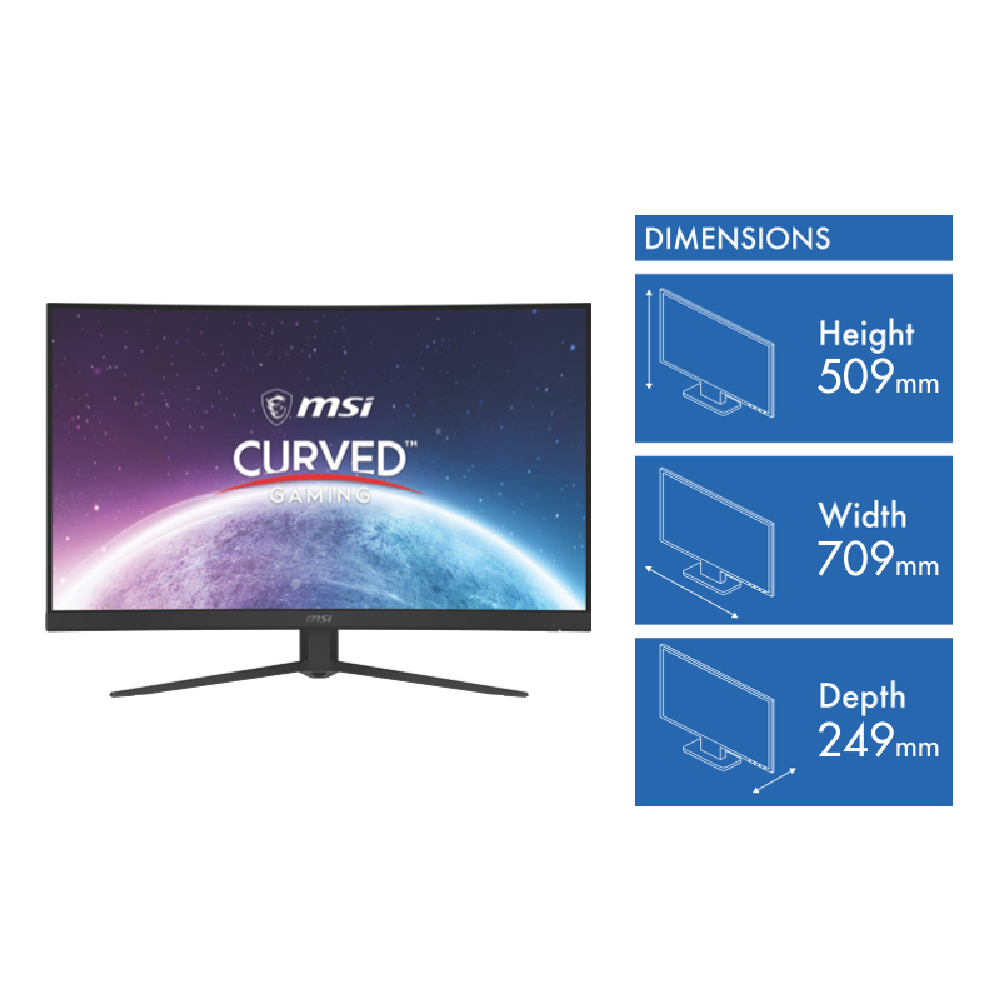 Looking for a gaming monitor that'll keep you ahead of the competition? Check out this MSI 31.5-inch curved display. It's got a super smooth 250Hz refresh rate and quick 1ms response time so you can react faster in fast-paced games. The Full HD screen uses VA technology for deep blacks and vibrant colors while the 1500R curve wraps around your field of view. With FreeSync Premium you won't see any screen tearing. There are plenty of ports to hook up your gear including HDMI and DisplayPort. The stand lets you tilt the screen for comfort during long gaming sessions. At 9kg with the stand it's sturdy but not too heavy to move around. The anti-glare coating cuts down on reflections too. MSI backs it with a 2-year warranty for peace of mind. Part number: 5783420.