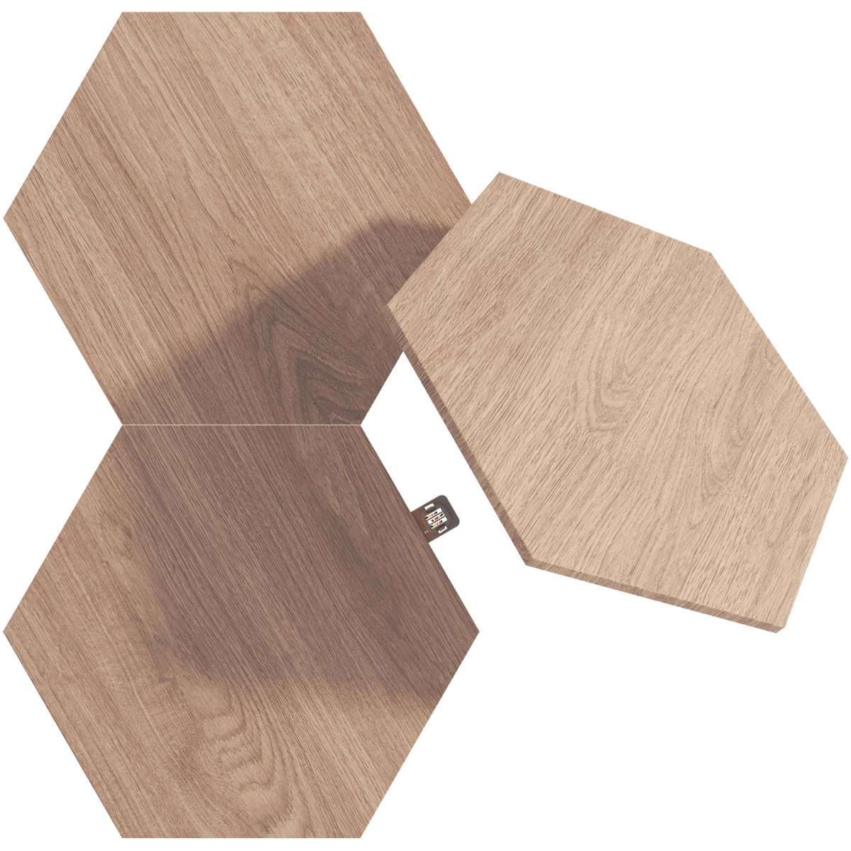 Add a stylish glow to your walls with the Nanoleaf Elements Expansion Pack. These three sleek wood-look light panels bring a warm ambience to any room. With over 16 million colors and adjustable brightness up to 22 lumens you can create the perfect lighting mood. Control the panels via the Nanoleaf app Apple HomeKit Amazon Alexa or Google Assistant. The panels connect together with included linkers and mounting plates for effortless installation. At just 200mm x 230mm these ultra-slim lights maximize your decor options. Made to last with a 25000 hour bulb life the Elements Expansion Pack lights up your life for years to come. Bring some woodsy warmth home with this three pack of Nanoleaf's innovative light panels. The manufacturer's part number for this product is NL52-E-0001HB-3PK. Discover how Nanoleaf Elements can enhance your space today.