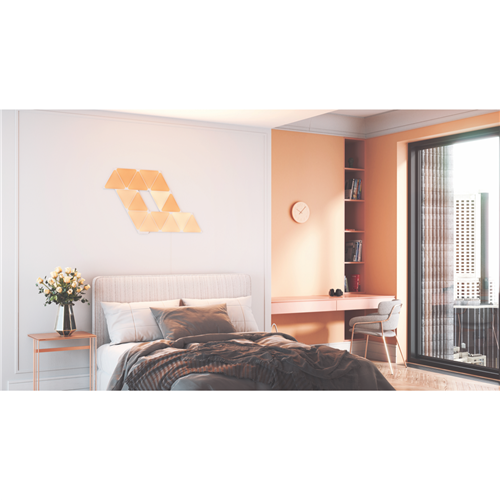 Make your home come alive with colour and creativity with the Nanoleaf Shapes Triangles Starter Kit. This smart lighting system features 15 ultra-thin LED light panels that you can arrange in any design you desire on your wall. With support for 16 million colours these WiFi-enabled light panels can be controlled via the Nanoleaf app compatible voice assistants like Amazon Alexa and Google Assistant or synced with your music movies and games for an immersive entertainment experience. Transform your living space with customizable ambient lighting that sets the mood. Mount the modular triangle panels using the included adhesive strips and connectors then take control with the app to change colours themes and brightness with ease. With a 25000 hour lifetime these innovative light panels are built to bring you joy for years to come. The manufacturer's part number for this product is NL47-6005TW-15PK. Bring creative flair to your home with the Nanoleaf Shapes Triangles Starter Kit today.