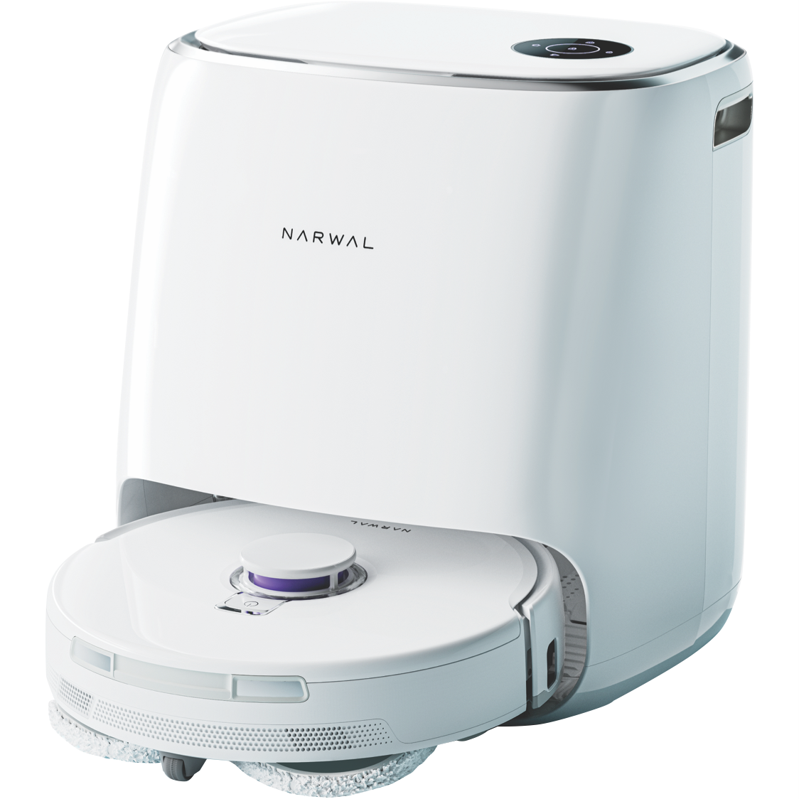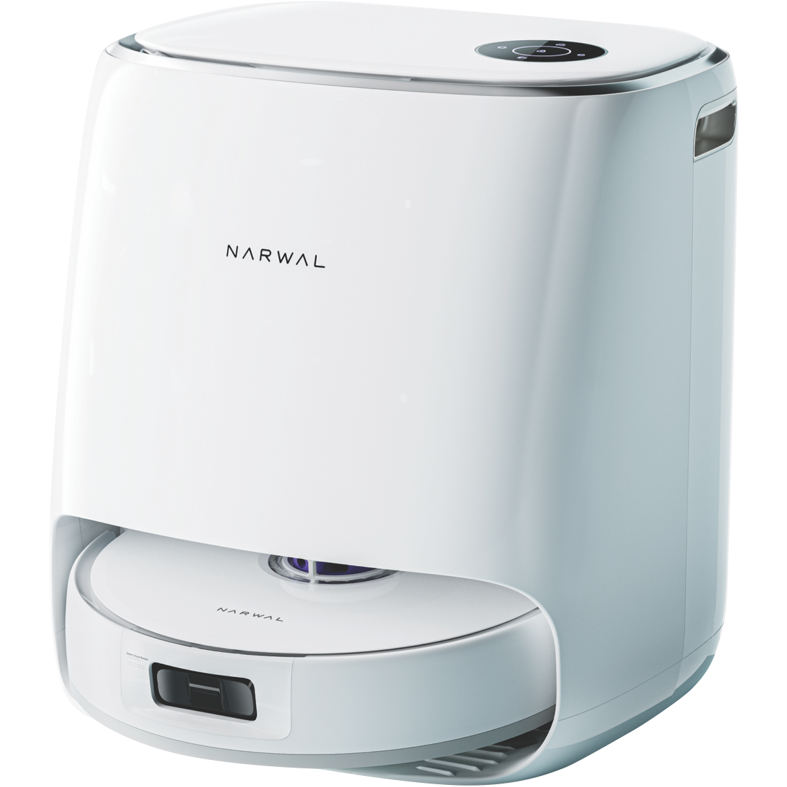 Want to make cleaning a breeze? The Narwal Freo X Ultra Robot Vacuum and Mop is here to help. This smart cleaner tackles both hard floors and carpets with powerful 8200Pa suction. It uses tri-laser sensors to navigate your home avoiding obstacles and restricted areas. The HEPA filter traps allergens making it great for homes with pets. You can control it with your voice using Google Assistant Amazon Alexa or Apple HomeKit. With a 5200mAh battery it cleans for hours on a single charge. The base station holds a dust bag so you don't have to empty it often. At just 55 decibels it's quiet enough to run while you're home. This white robot measures 350mm wide and 107mm tall fitting under most furniture. It comes with everything you need to get started including mop pads and side brushes. Narwal backs it with a 2-year warranty. Part number: YJCC015.