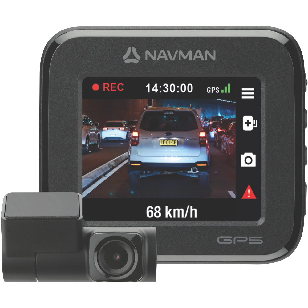 When you want a dual camera dash cam that does more the MiVue 920 dual camera is the device for you. You can download view and share footage from front or rear cameras using the MiVue Pro App over WIFI even from the side of the road after an incident. It also comes with premium safety alerts not only for fixed speed cameras but also school zones and highway change of speed zones and these can be updated for free as often as every month.. This compact dash camera features a 2 LCD display for convenient playback directly on the device. With monthly safety camera updates you'll stay alert to fixed and mobile speed cameras red light cameras and more. Record your drives in Full 1080p HD quality and expand storage up to 256GB with a microSD card. The MiVue 920 protects your recordings with a G-sensor that detects impacts. Conveniently mount the camera on your windshield and power it from your car's 12V socket. Navman backs this dashcam with a 2 year warranty for added peace of mind. The manufacturer's part number for this product is 6128746. Seize the moment with the Navman MiVue 920 DashCam.