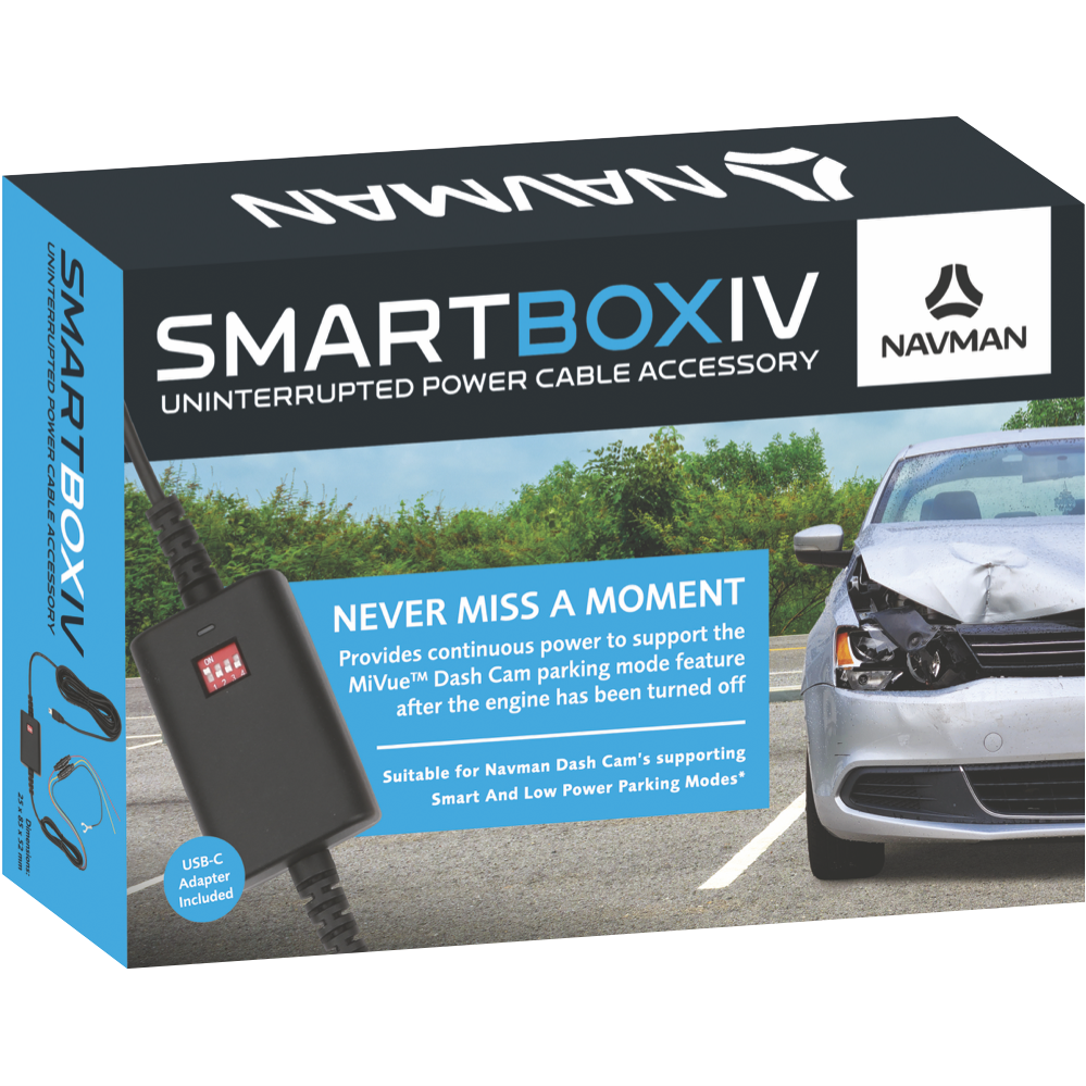 Connect your dash cam to your car's power system with the MiVue Smartbox-IV. This compact black accessory plugs in via USB-C and provides a reliable power connection for your dash cam while you drive. The Smartbox is designed to work seamlessly with compatible MiVue dash cams giving you a cleaner installation without cables hanging down. It's small enough to tuck away neatly in your vehicle with box dimensions of just 143mm x 43mm x 206mm. Comes with a 1 year manufacturer's warranty for peace of mind. Part number: 6407047.