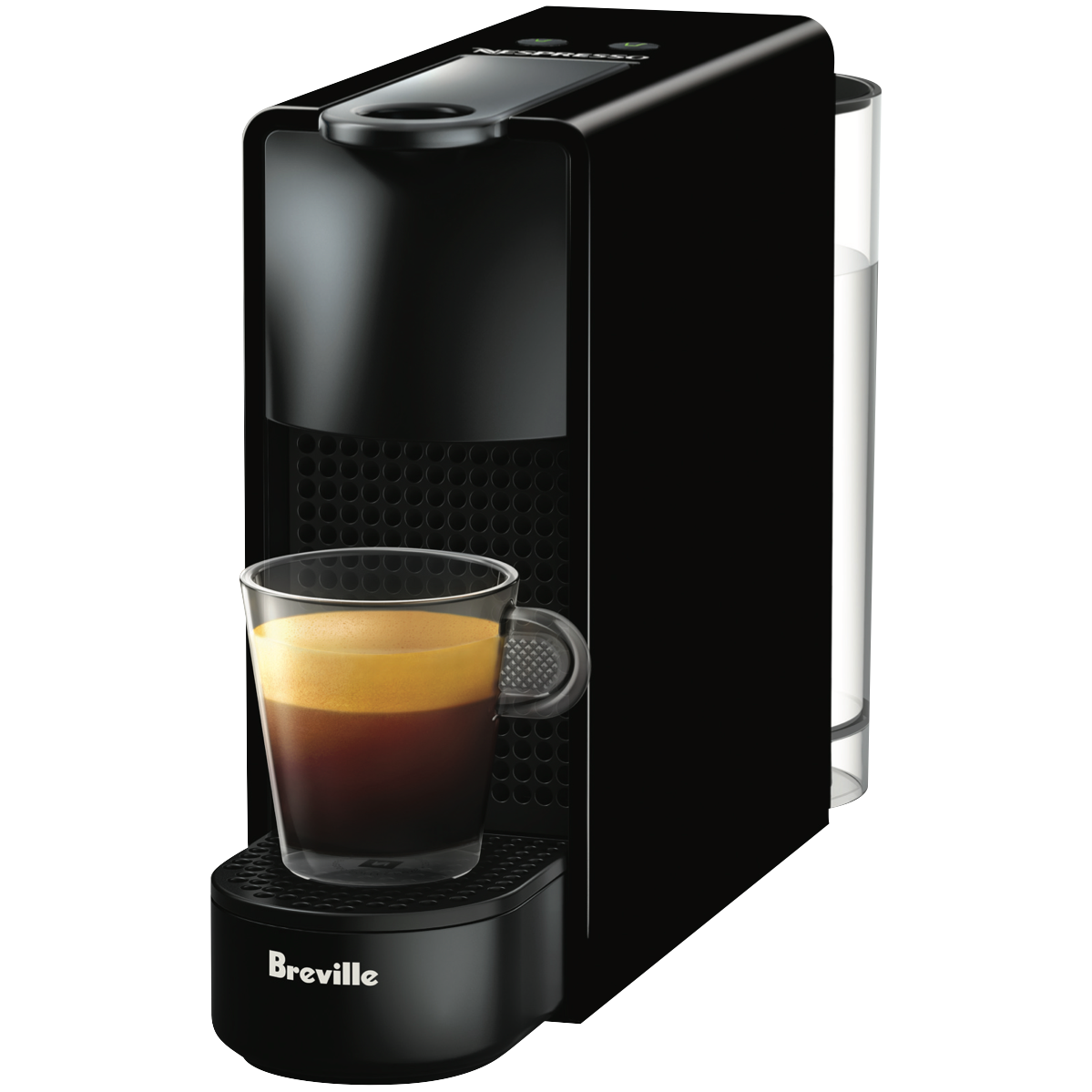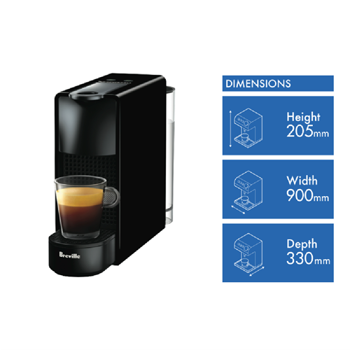 You can serve espresso drinks anytime with this black Nespresso Breville Essenza Mini Solo capsule coffee machine BEC220BLK. It has a single-serve capsule design and a two cup brewing capacity allowing you to brew cups and cups of refreshing stimulating coffee. Its removable reservoir enables you to enjoy easy cleanup. This Nespresso coffee machine is perfect for starting the day off right with a freshly made espresso or lungo with its two programmable cup sizes..