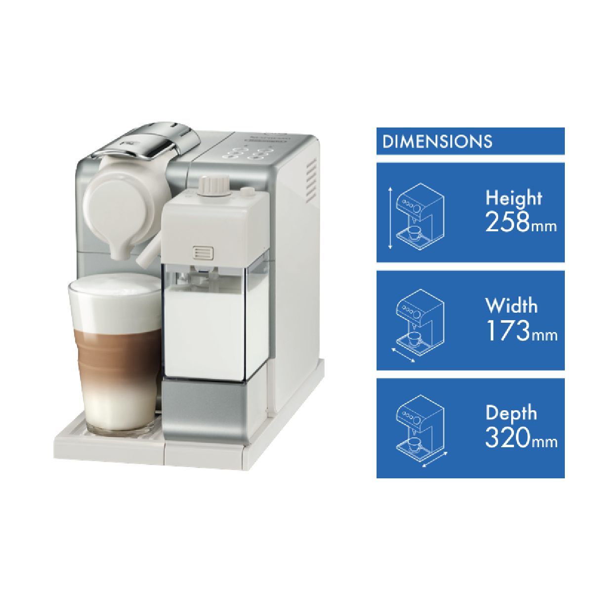Bring cafe-quality coffee drinks into your home with the stylish Nespresso Lattissima Touch Restyle Silver capsule coffee machine. With a sleek silver finish and compact footprint this fully automatic single-serve espresso maker adds elegance to any kitchen decor. Using Nespresso capsules it heats up in just 25 seconds and delivers barista-style lattes cappuccinos and more at the touch of a button. The 19 bar pressure pump and 1400W thermoblock heating system extract maximum flavor for an authentic espresso experience. Froth milk like a pro with the built-in rapid cappuccino system. Simply pour milk into the detachable container and place it into the frother. With the touch of a button hot creamy milk froth is ready in seconds. The 0.9L removable water tank allows you to brew cup after cup without refilling. Once finished used capsules are automatically ejected into a holding tank that accommodates up to 10 capsules for easy disposal. With convenient features like automatic shutoff and adjustable cable storage the Nespresso Lattissima Touch adds simplicity to your morning routine. Brew cafe favorites at home every day with this versatile easy-to-use coffee maker. The manufacturer's part number for this product is EN560S.
