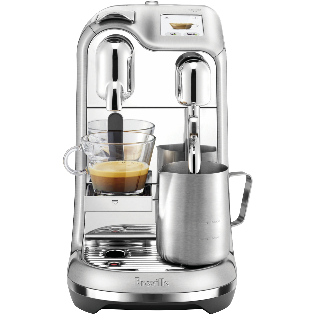 Kickstart your day with this Breville the Creatista Pro Capsule Coffee Machine BNE900BSS offering the convenience of capsule coffee with precise milk texturing for cafe quality coffee at home. With fast three second heat up simultaneous coffee extraction and customisable milk texturing you can have two cappuccinos ready to enjoy in just 75 seconds; so you and your loved ones can get caffeinated in no time. Plus the simple touchscreen operating system has intuitive technology with eight pre-set drinks and customisable drink settings for quick access to your favourite beverages. With a dedicated hot water spout for long black this Breville coffee machine offers a wide range of options suitable for all coffee lovers.