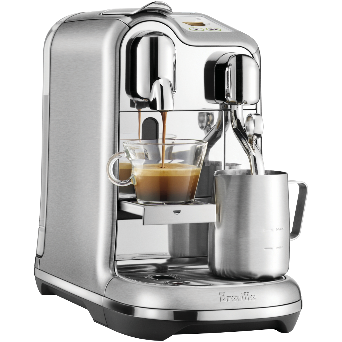 • Capsule coffee machine in brushed stainless steel